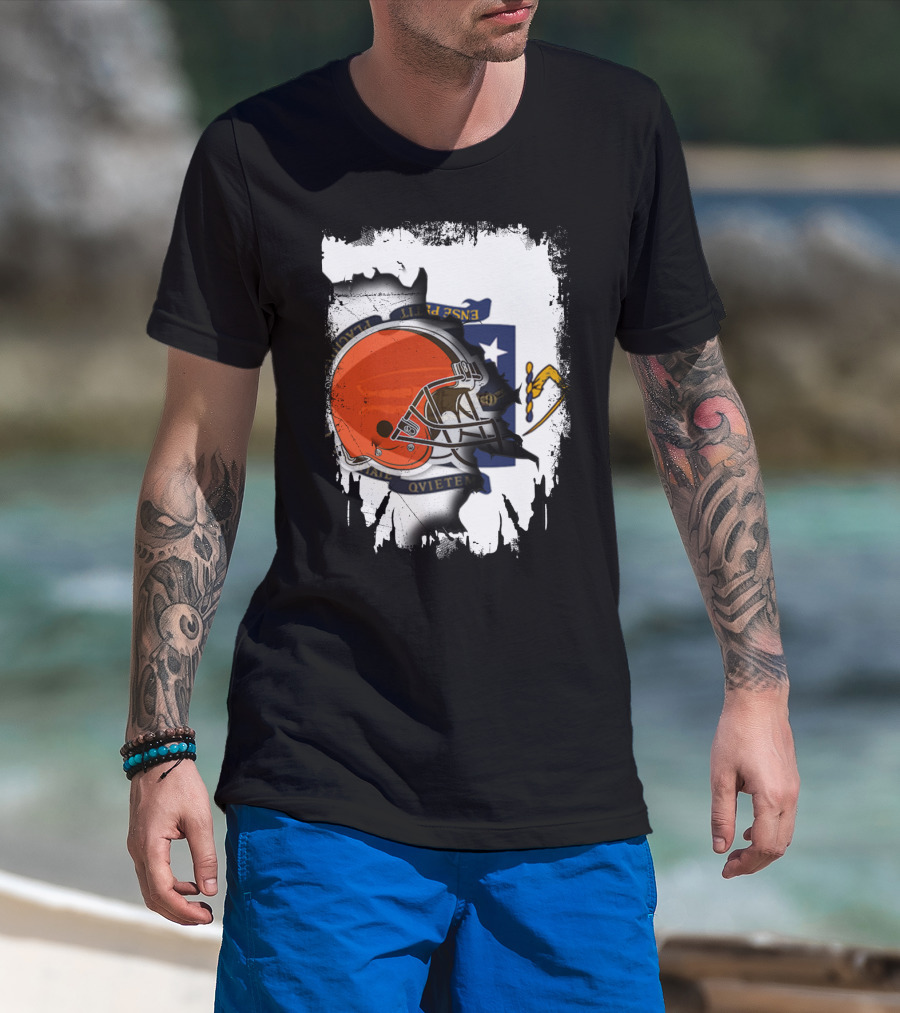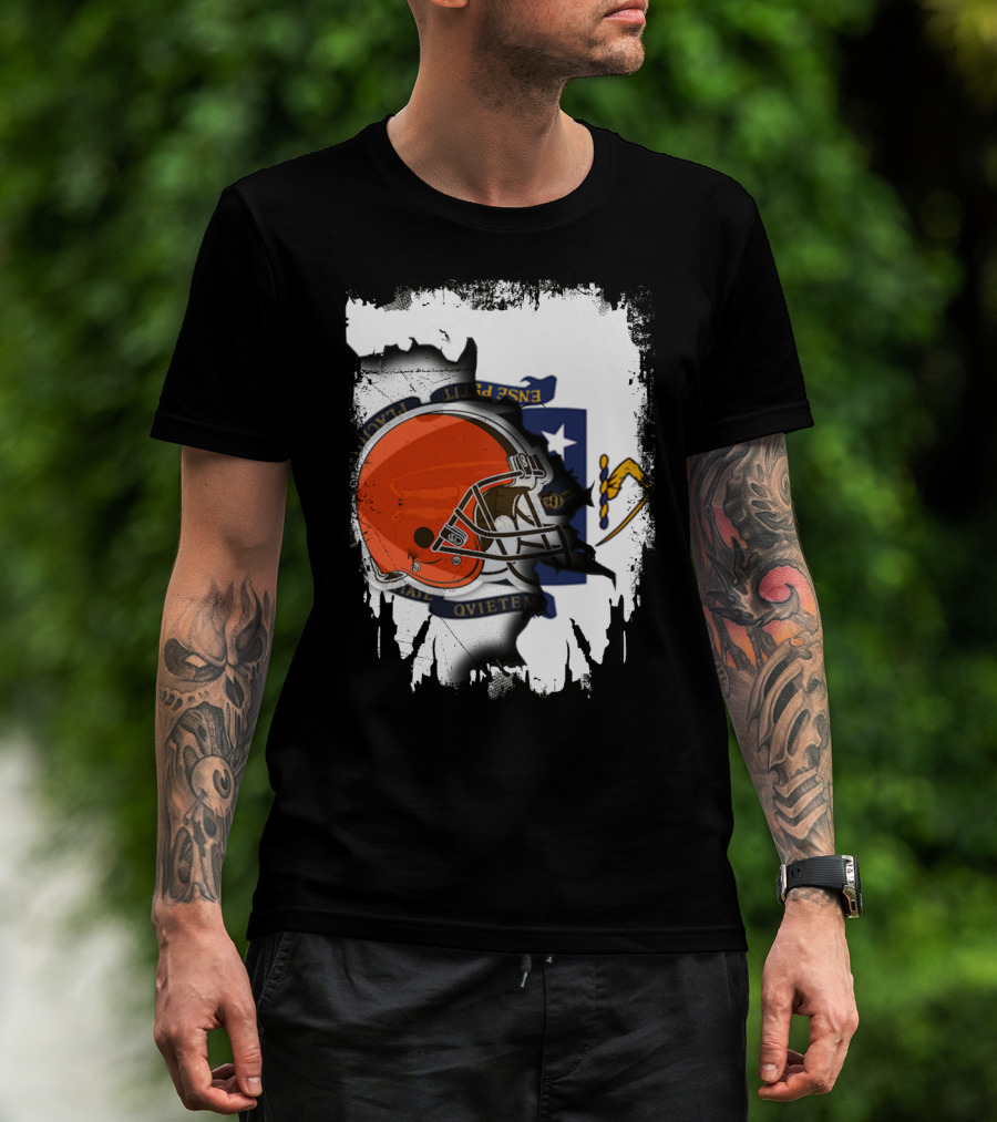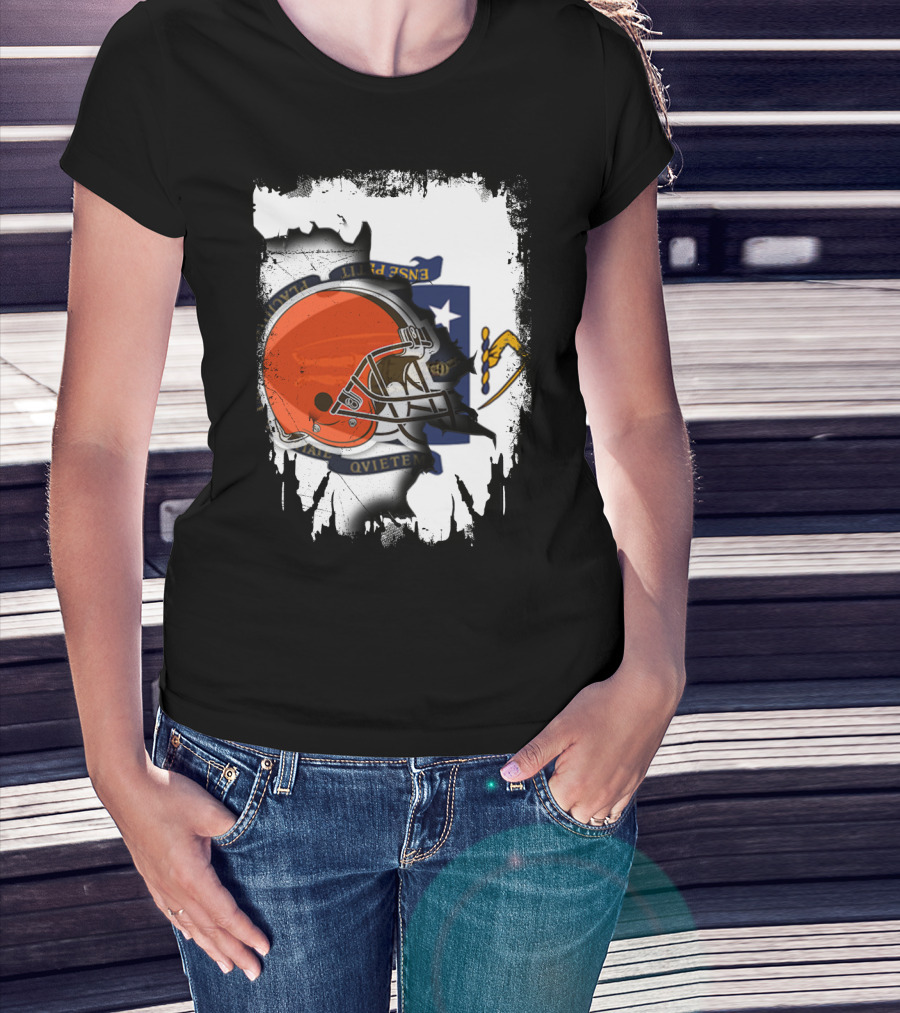 Massachusetts Unites With Cleveland Browns Helmet And State Flag T-Shirt