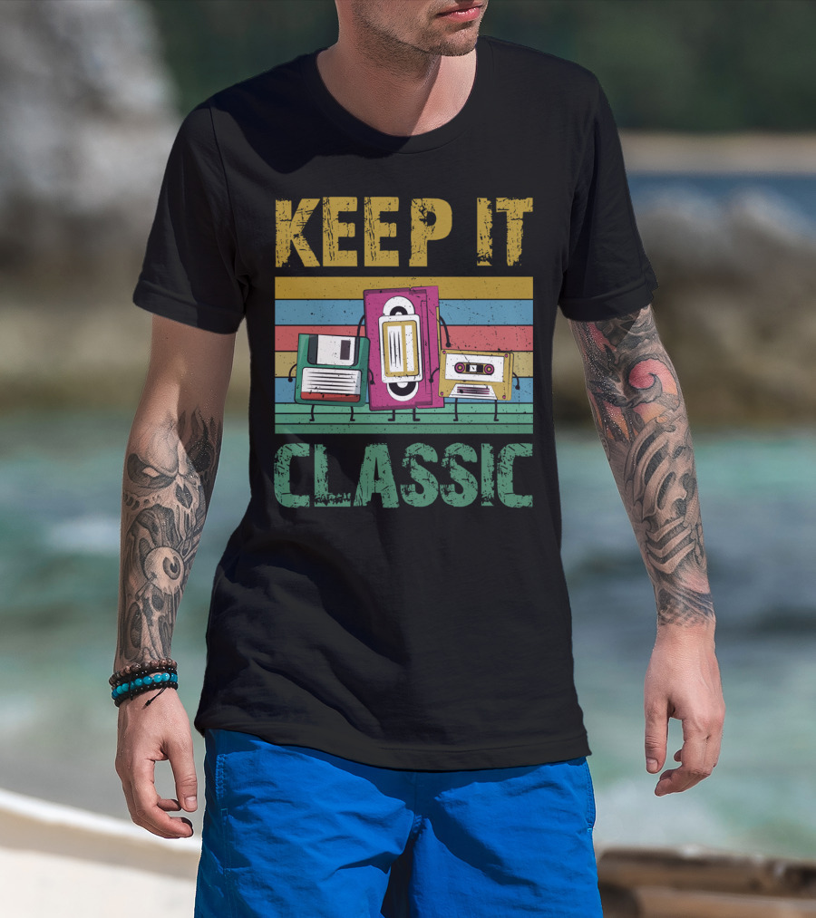 Keep It Classic Old 90s Technology Floppy VHS Retro Stripes T-Shirt