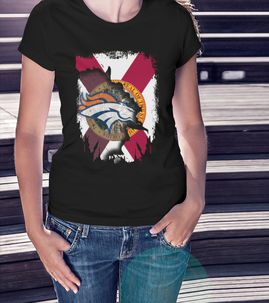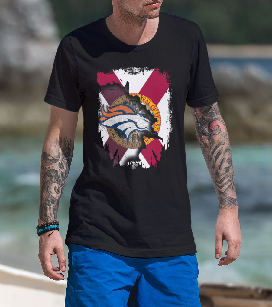 Together Florida With Broncos Logo And State Flag Emblem T-Shirt