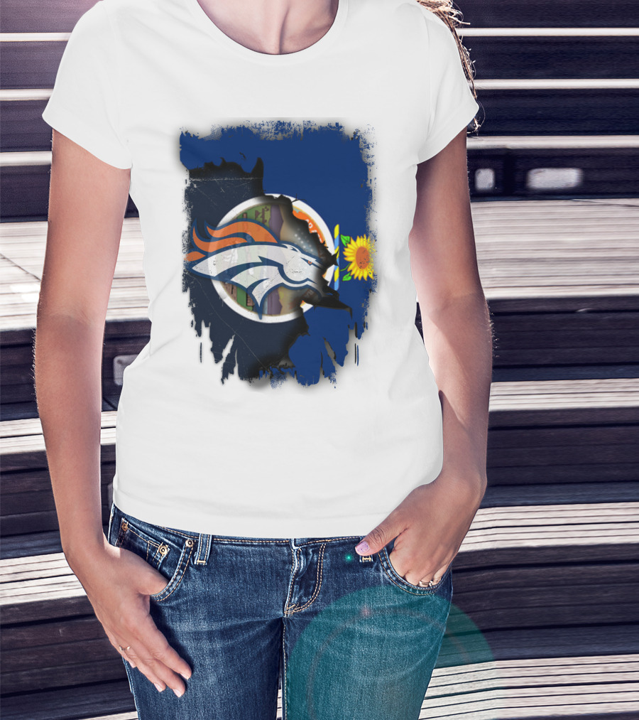 Kansas Sunflower With Broncos Logo Together T-Shirt