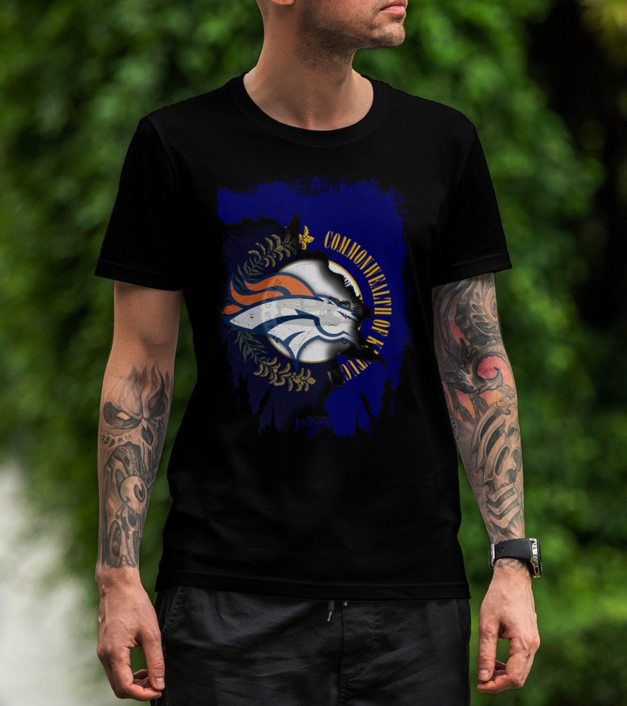 Commonwealth Of Kentucky With Broncos Logo Fusion T-Shirt