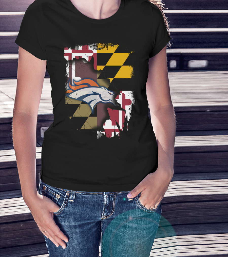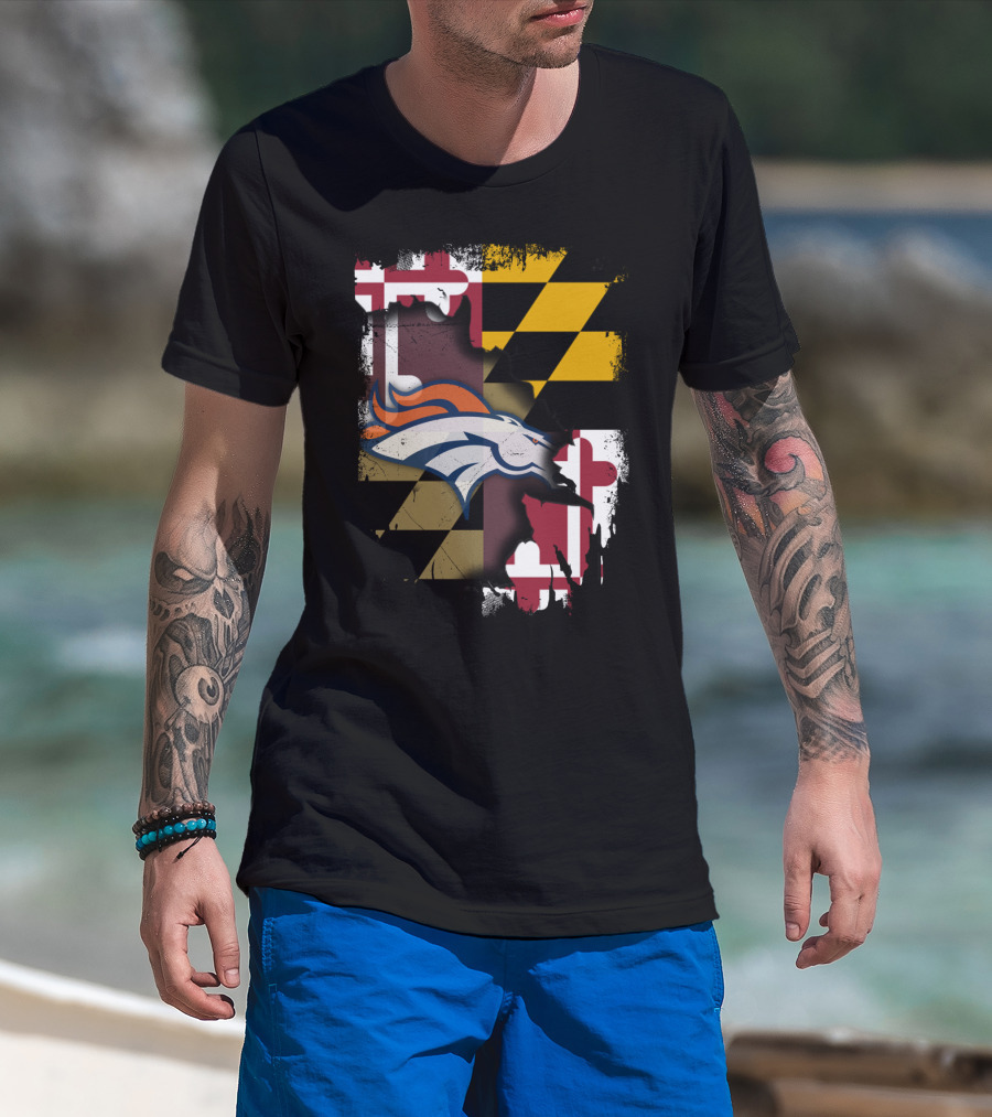 Maryland State Flag With Broncos Logo Together T-Shirt