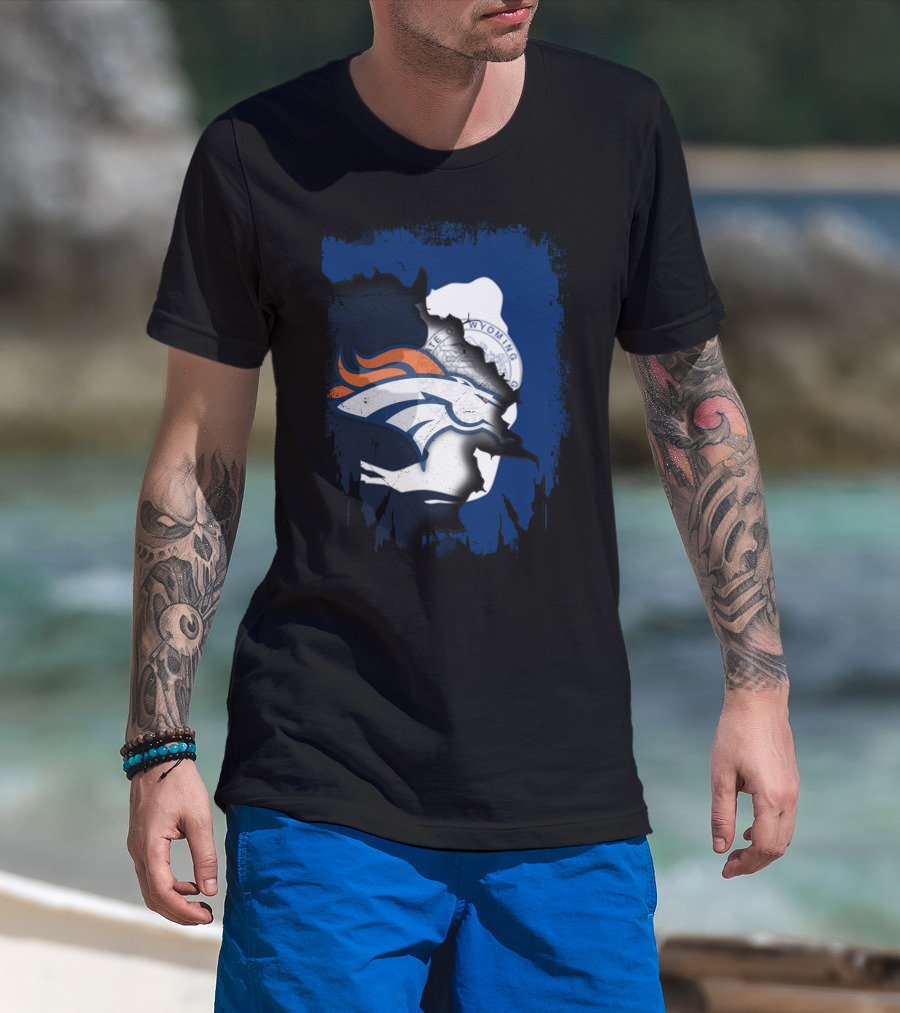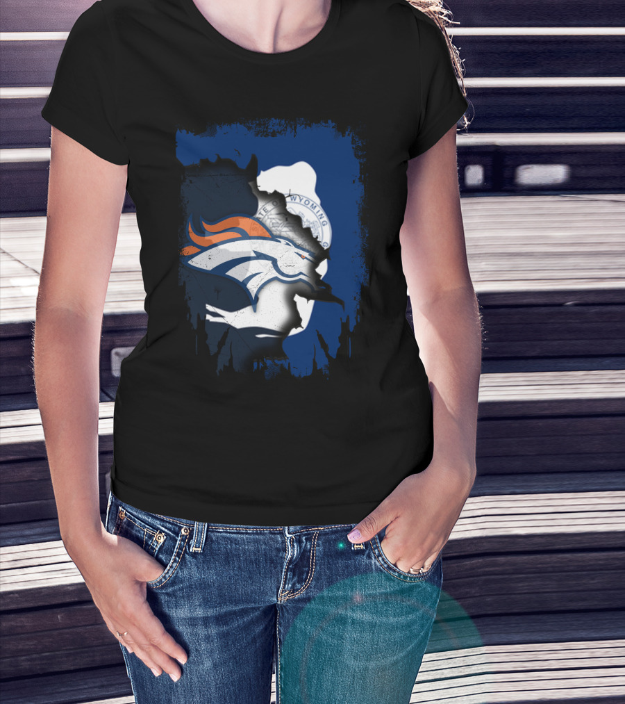 Wyoming United With Denver Broncos Iconic Emblem T-Shirt