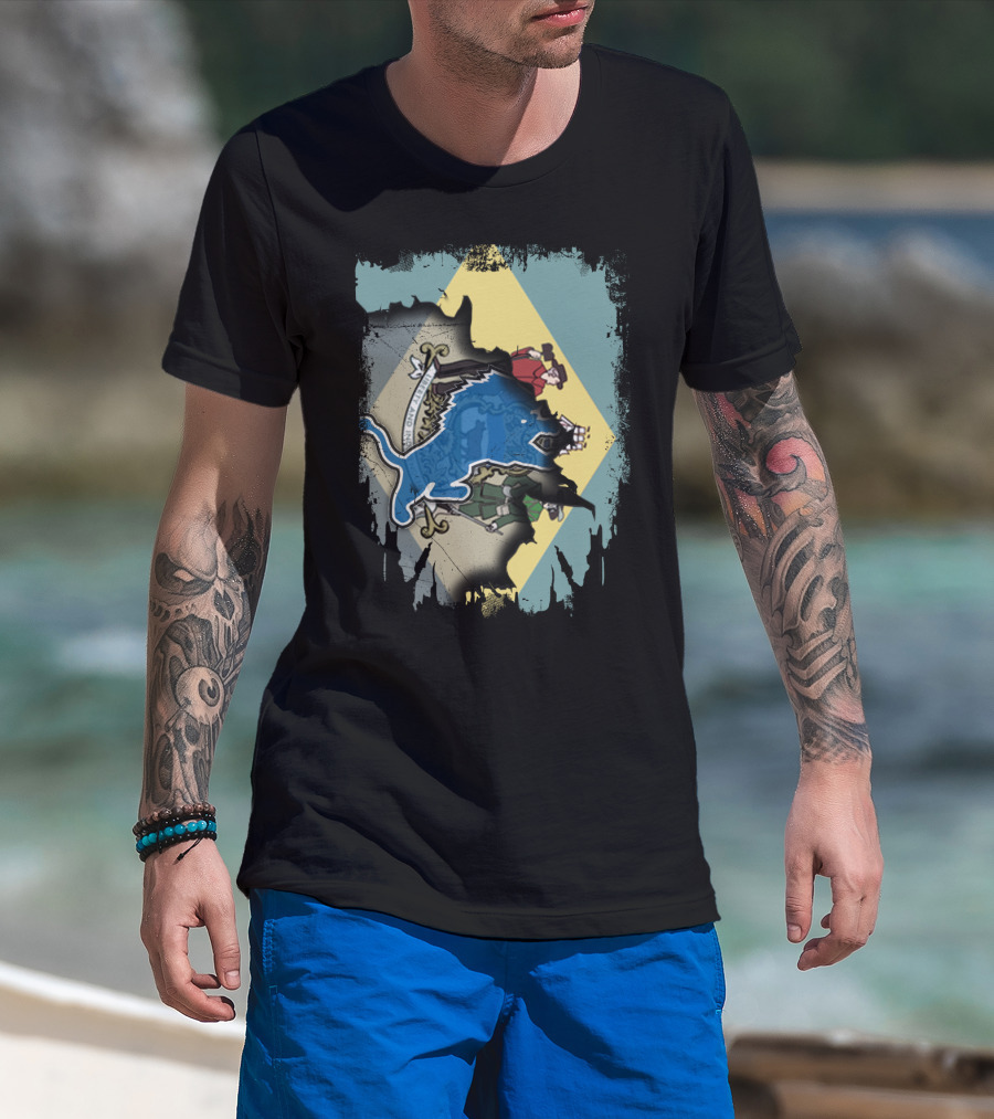 The Delaware State Crest with Blue Lions and Tri-Color Background T-shirt is designed for everyday wear and a consistent fit. Fabric is pre-shrunk ring-spun cotton with durable stitching. See the size chart below for exact measurements.