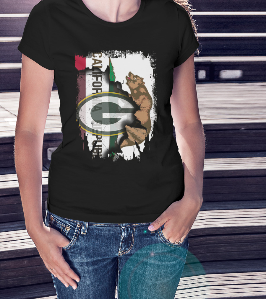 California Republic With Green Bay Packers Logo And Bear T-Shirt