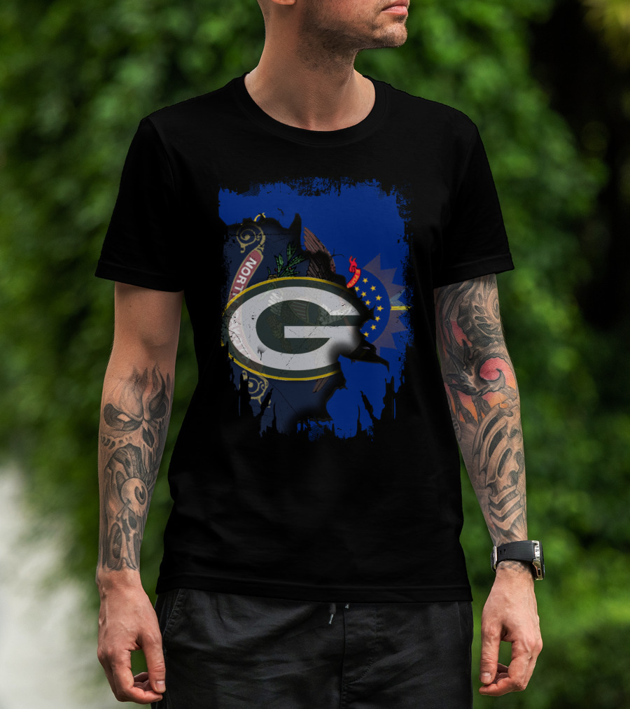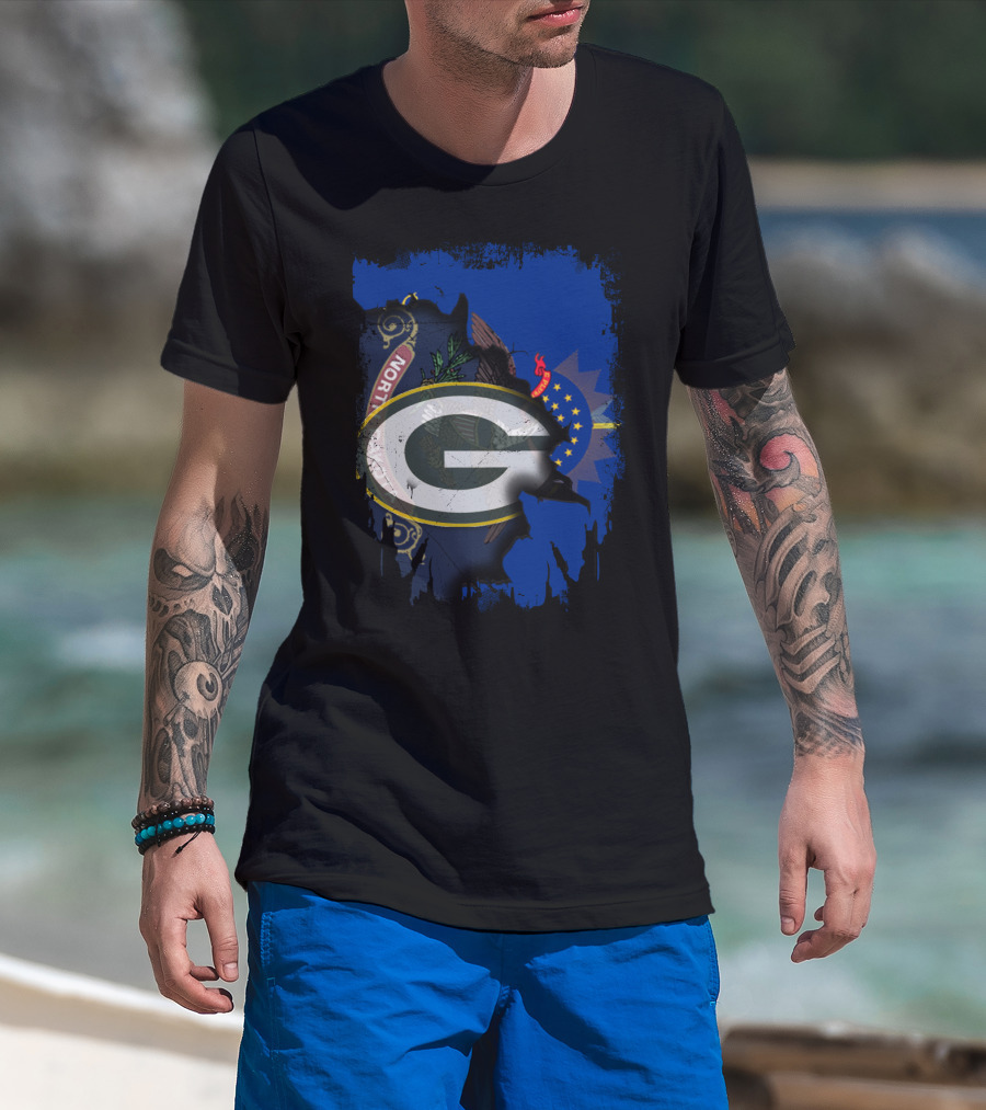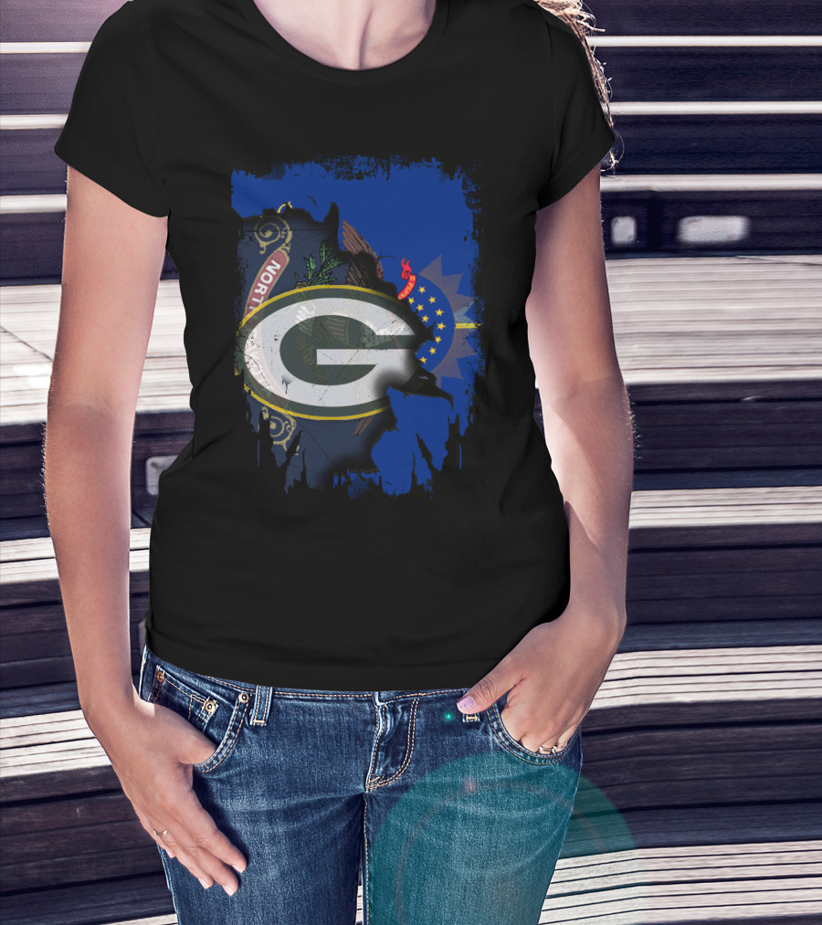 Green Bay Packers Logo Overlaid On North Dakota Flag T-Shirt