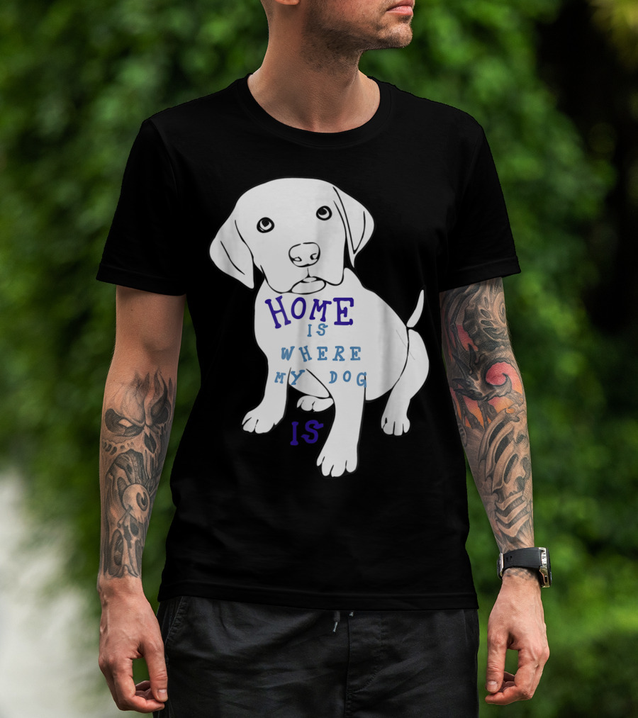 The Home Is Where My Dog Is T-shirt is designed for everyday wear and a consistent fit. Fabric is pre-shrunk ring-spun cotton with durable stitching. See the size chart below for exact measurements.