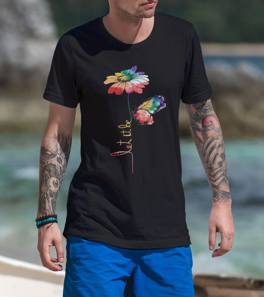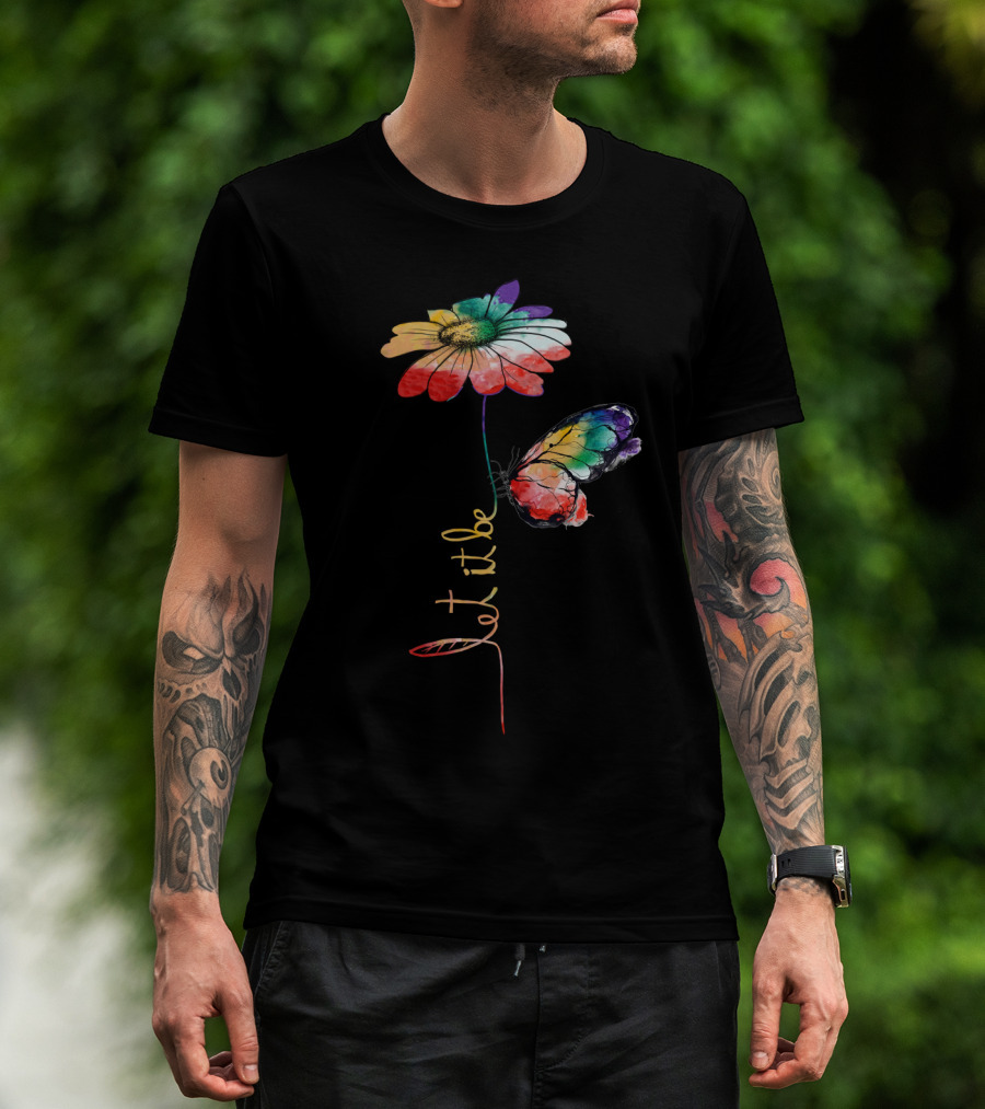 Let It Be Flower And Butterfly Vibrant Color T-Shirt