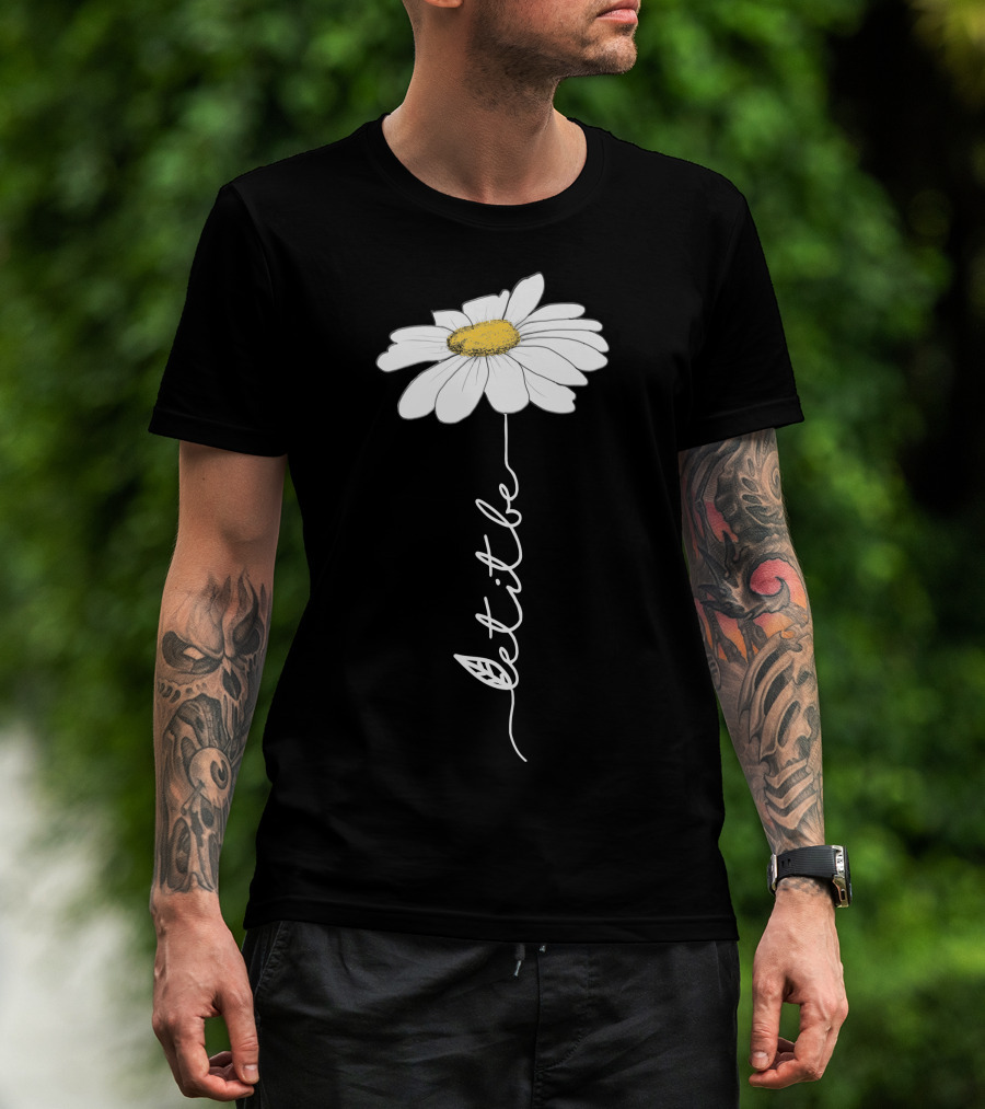 The Let It Be Flower Daisy T-shirt is designed for everyday wear and a consistent fit. Fabric is pre-shrunk ring-spun cotton with durable stitching. See the size chart below for exact measurements.