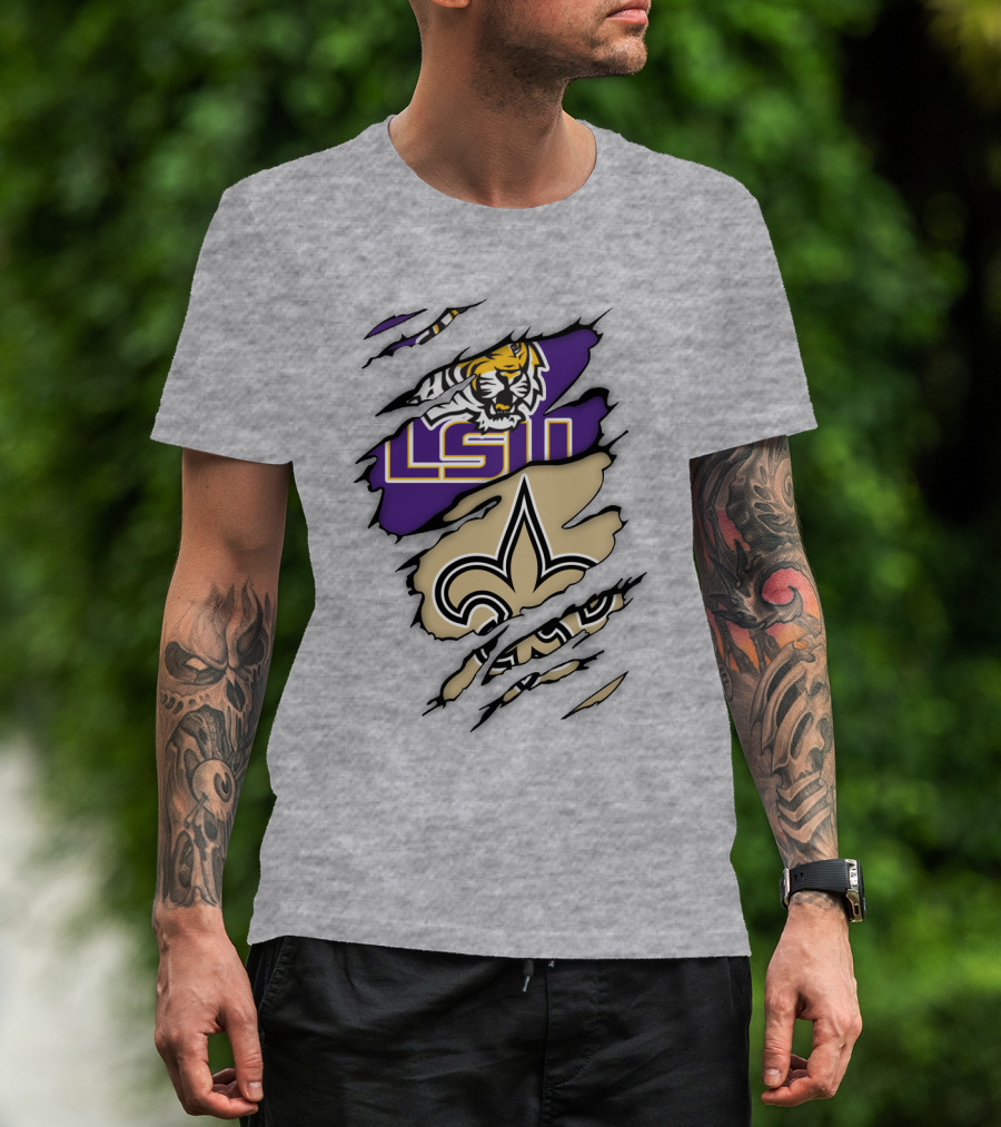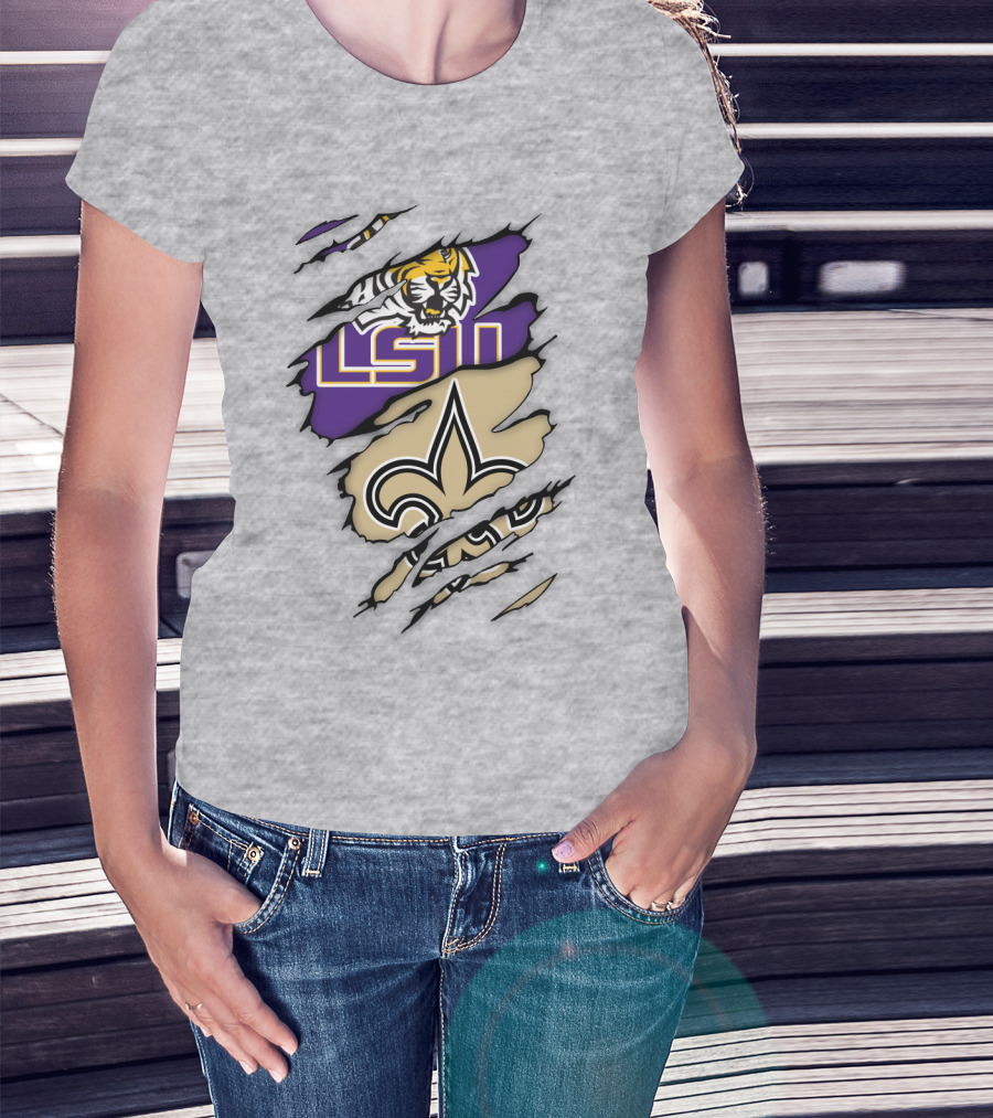 LSU Tigers New Orleans Saints Fleur-de-Lis Torn T-Shirt