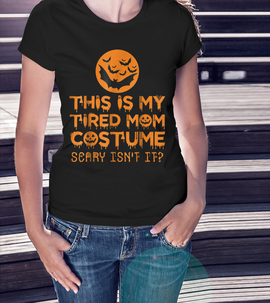 This Is My Tired Mom Costume Scary Isn't It Halloween Bats And Jack O'Lanterns T-Shirt