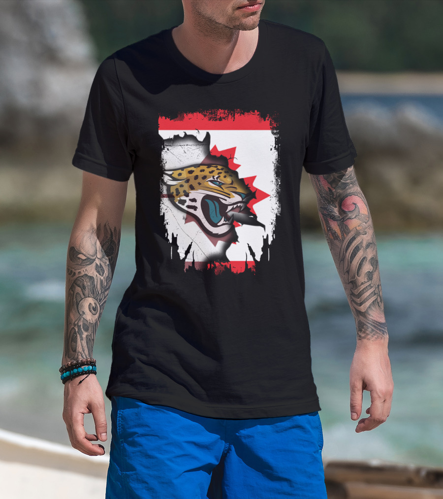 Together Canada Jaguars Emblem With Maple Leaf Backdrop T-Shirt