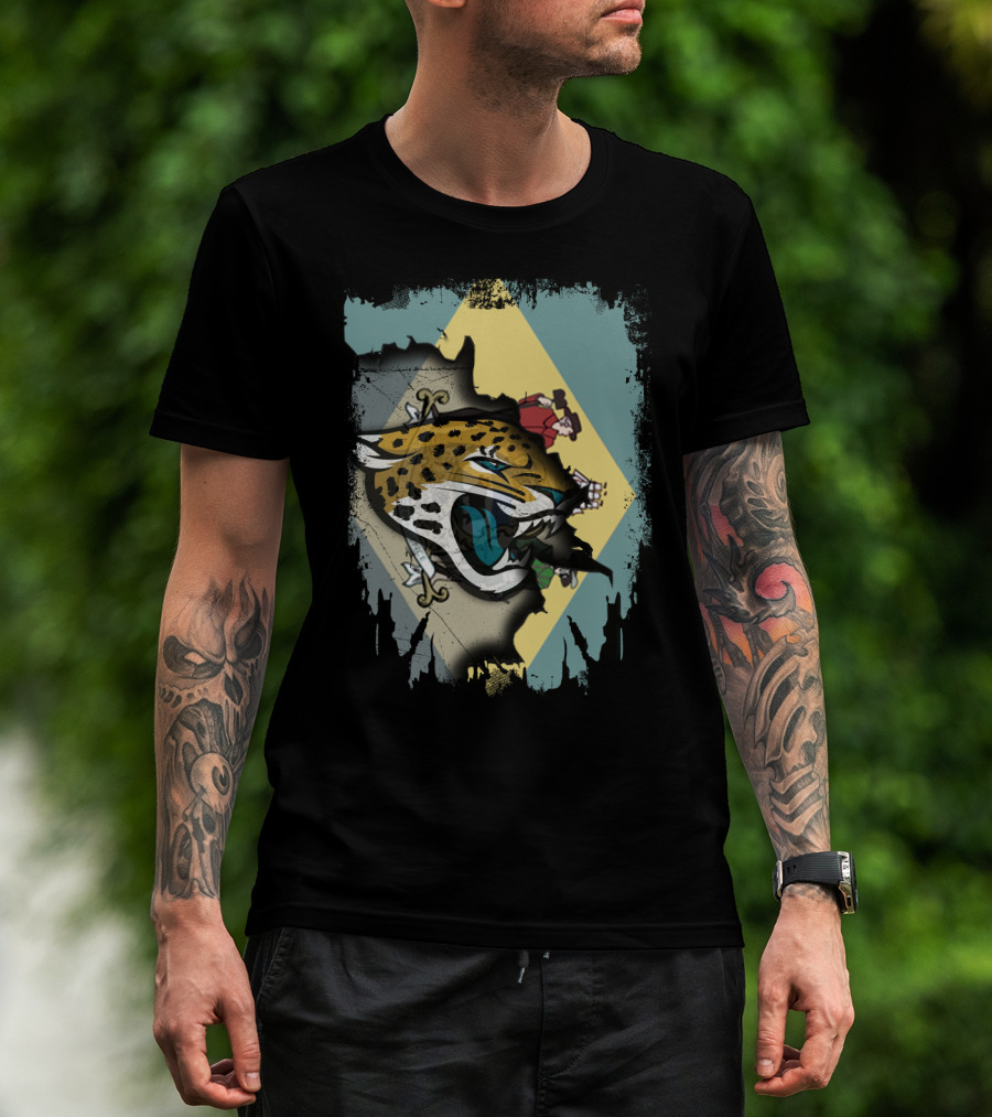 Delaware State Flag With Jacksonville Jaguars Logo Fusion T-Shirt
