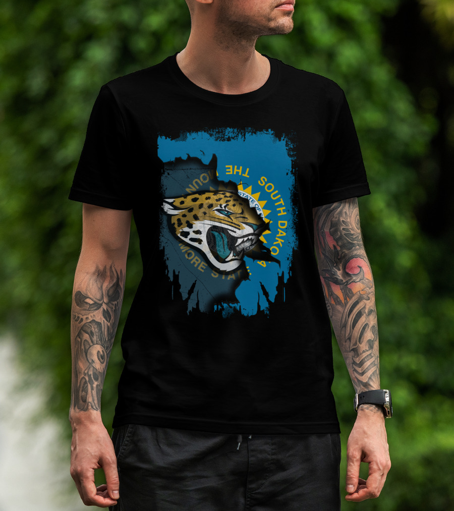 The South Dakota State with Jaguars and Flag T-shirt is designed for everyday wear and a consistent fit. Fabric is pre-shrunk ring-spun cotton with durable stitching. See the size chart below for exact measurements.