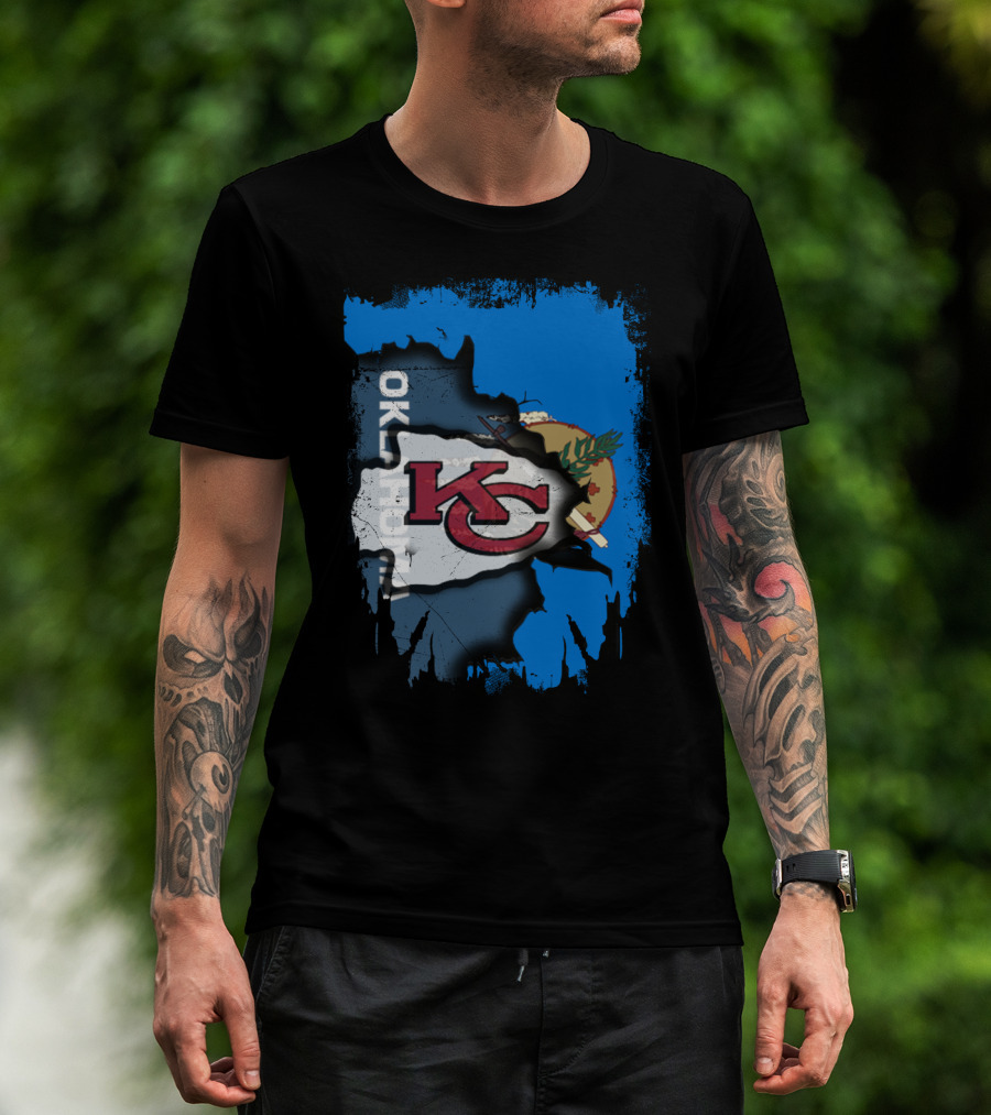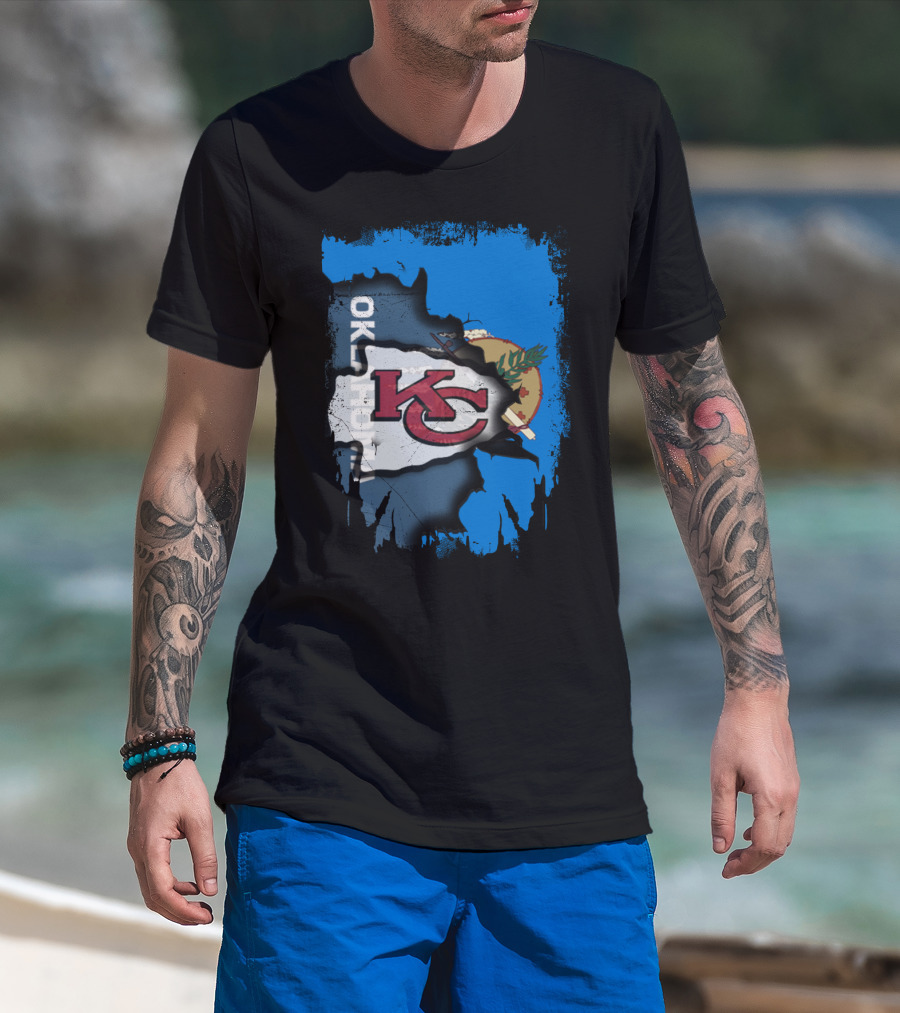 Oklahoma Chiefs Unity KC Logo With State Flag T-Shirt