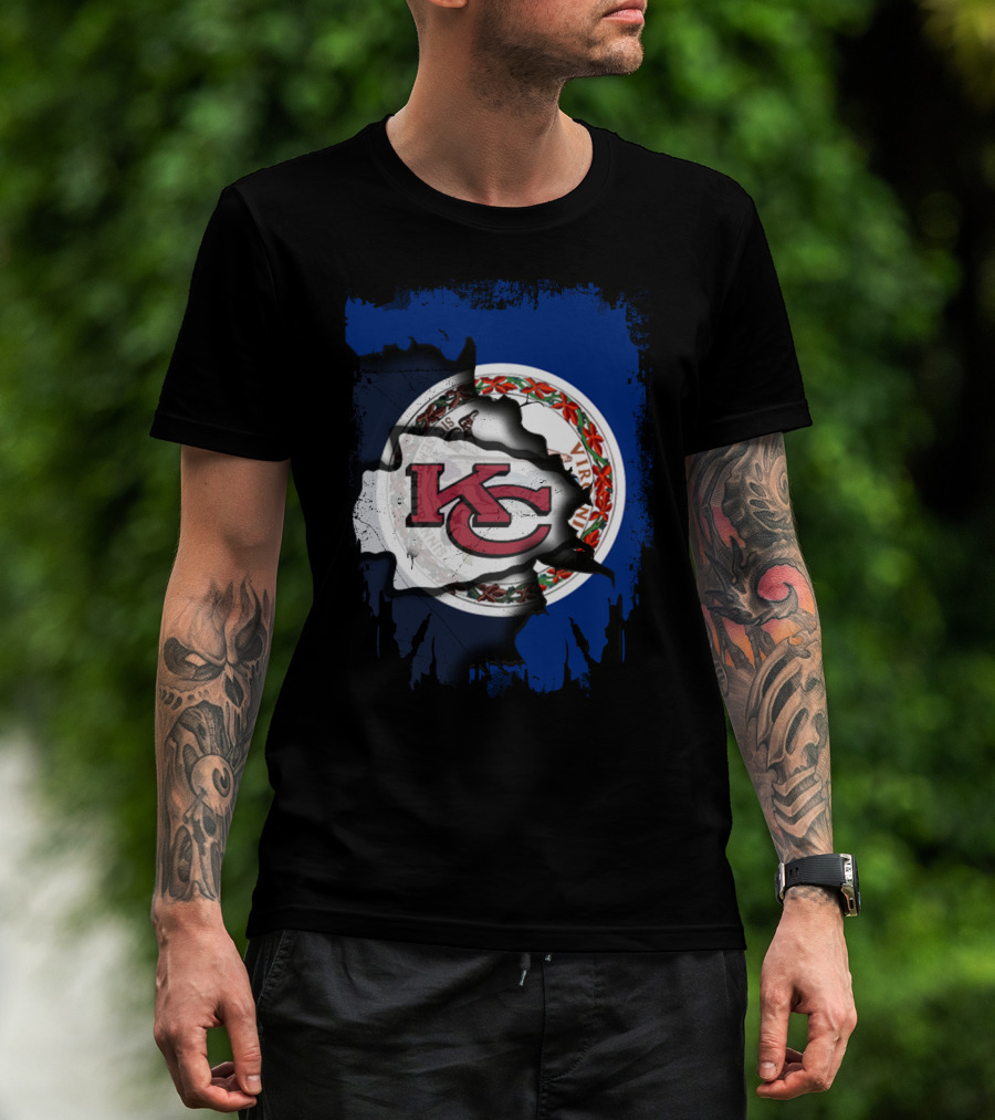 Virginia State Flag With KC Chiefs Logo Fusion T-Shirt