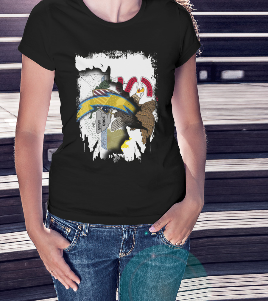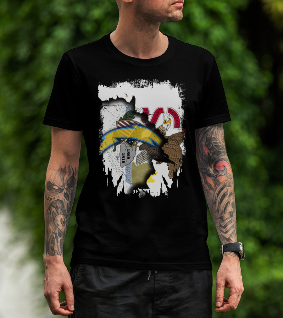 Illinois Flag And Chargers Symbol Fusion T-Shirt