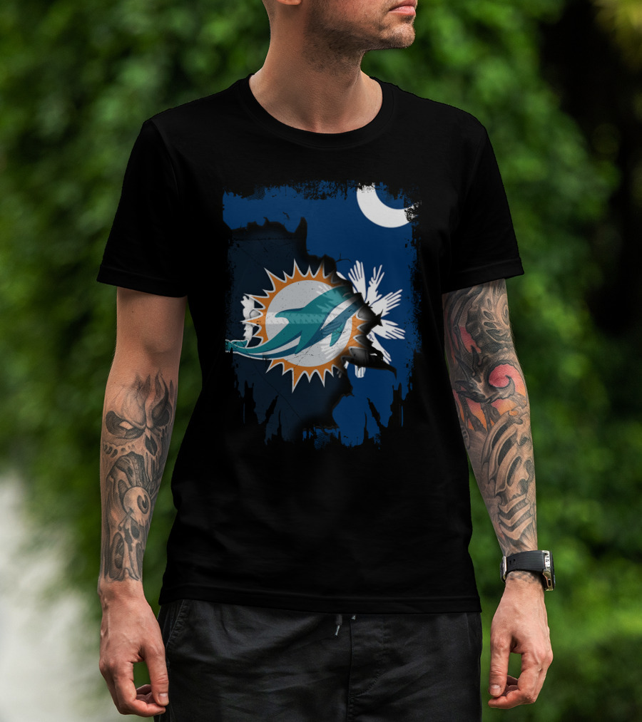 Miami Dolphins Logo With South Carolina State Flag Elements T-Shirt