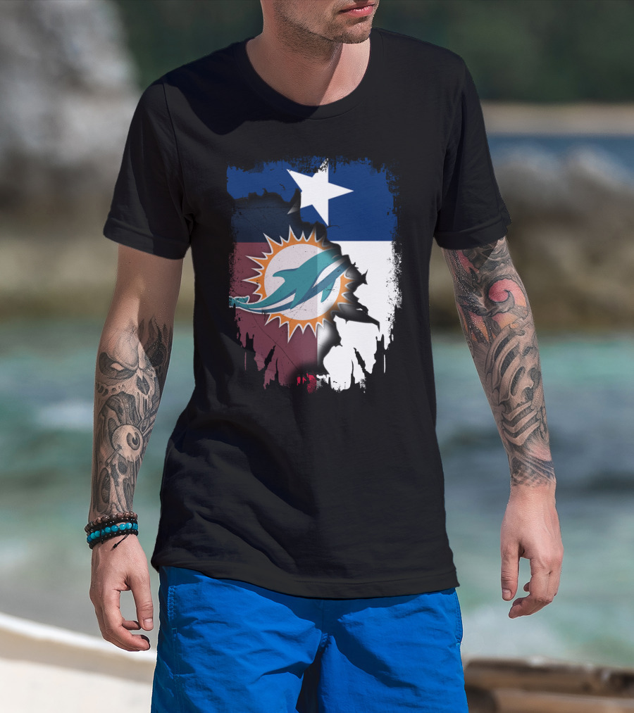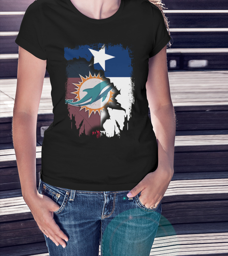 The Texas Miami Dolphins Fusion T-shirt is designed for everyday wear and a consistent fit. Fabric is pre-shrunk ring-spun cotton with durable stitching. See the size chart below for exact measurements.