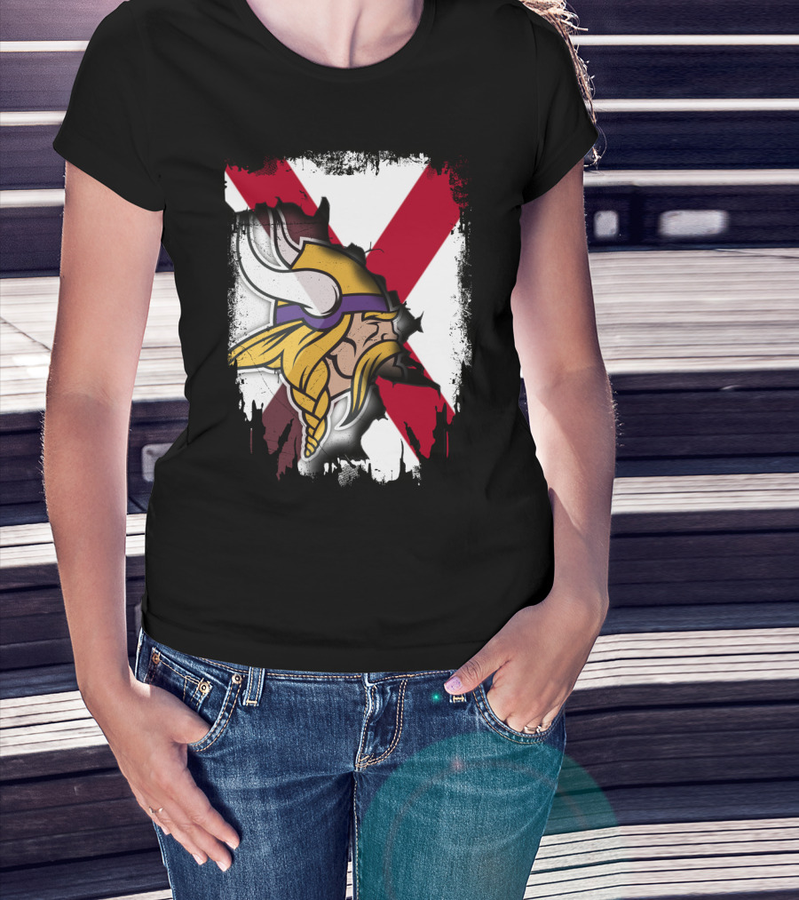 The Alabama Vikings United with Crossed Flag T-shirt is designed for everyday wear and a consistent fit. Fabric is pre-shrunk ring-spun cotton with durable stitching. See the size chart below for exact measurements.