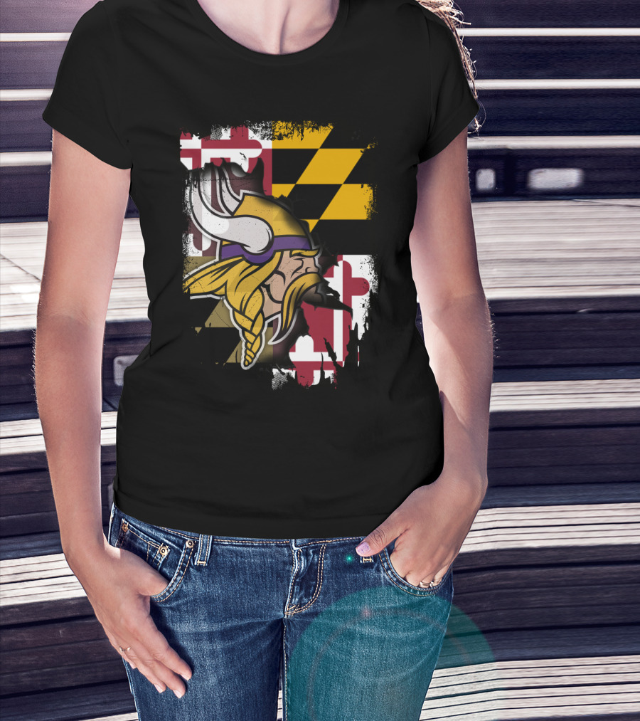 Vikings Helmet Art With Maryland Flag Background T-Shirt