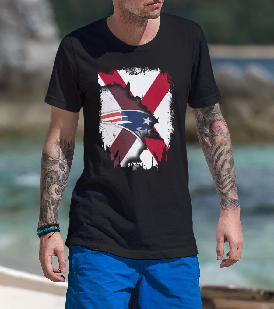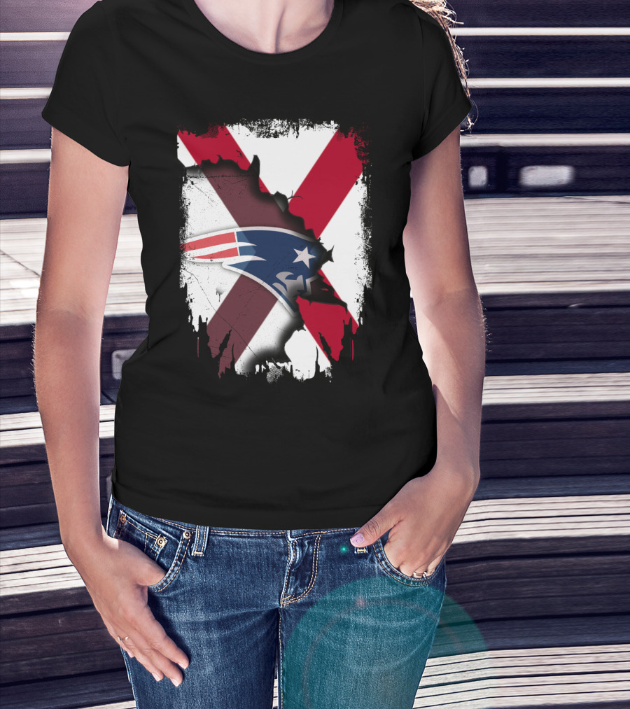 Alabama State Flag X Symbol With Patriots Logo Fusion T-Shirt