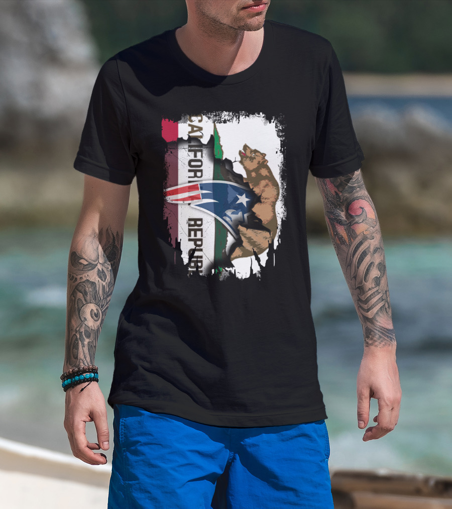 California Republic Flag And New England Patriots Logo Fusion T-Shirt