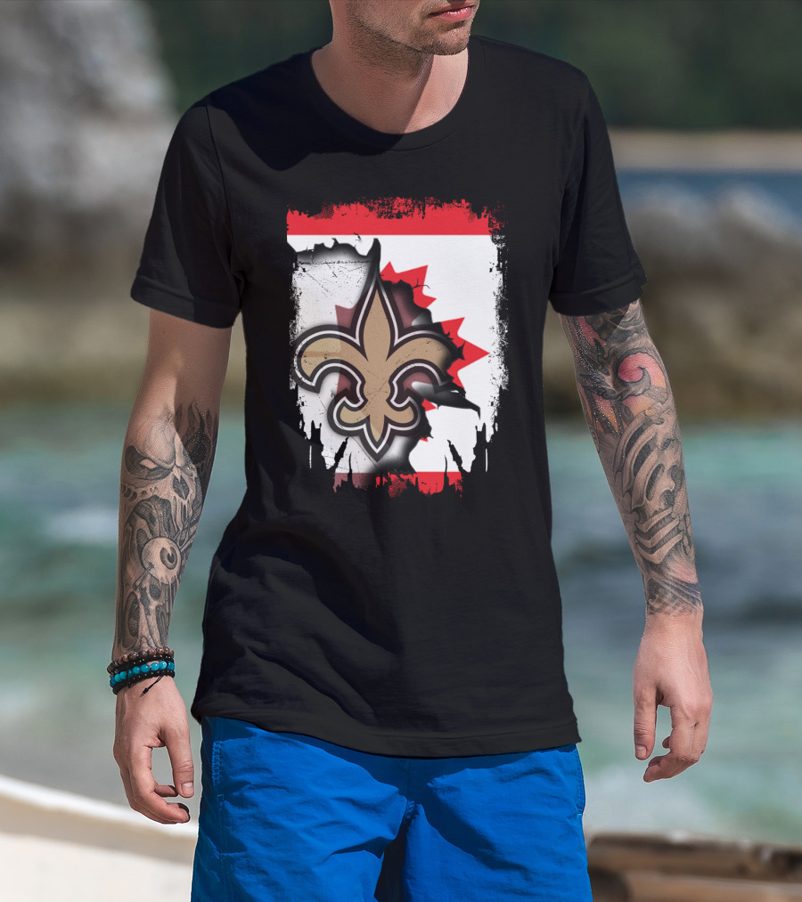 The Canada Saints Maple Leaf Burst Fleur-de-lis T-shirt is designed for everyday wear and a consistent fit. Fabric is pre-shrunk ring-spun cotton with durable stitching. See the size chart below for exact measurements.