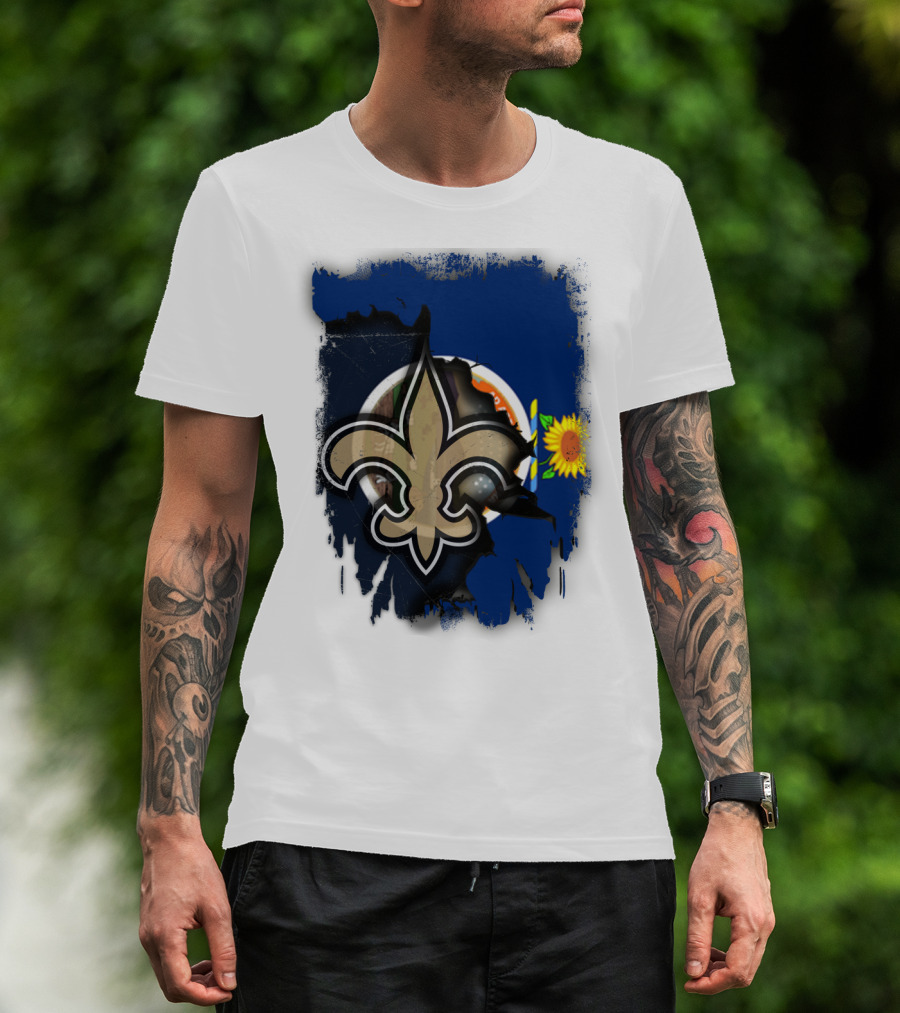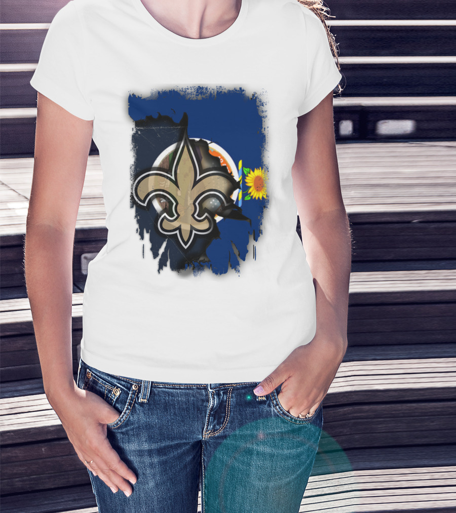 Kansas Sunflower And Saints Fleur-de-lis Harmony Together T-Shirt