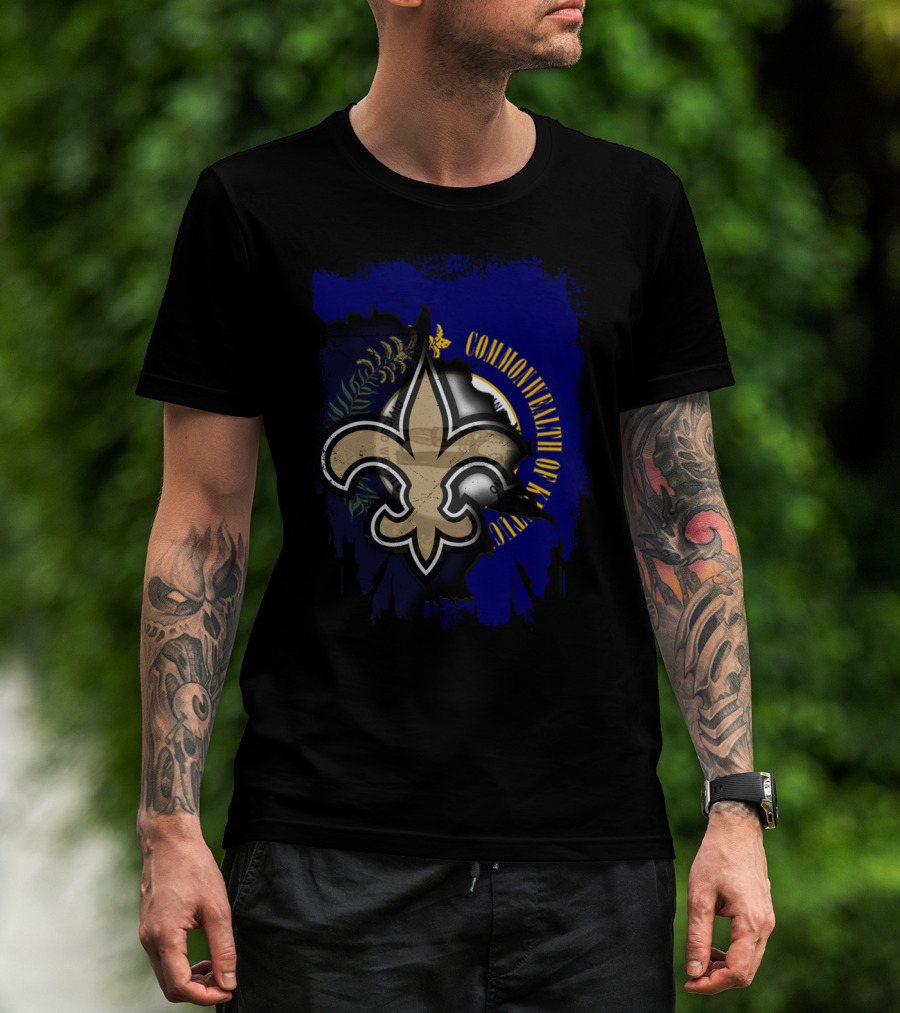 Commonwealth Of Kentucky With Saints Fleur-De-Lis Emblem T-Shirt