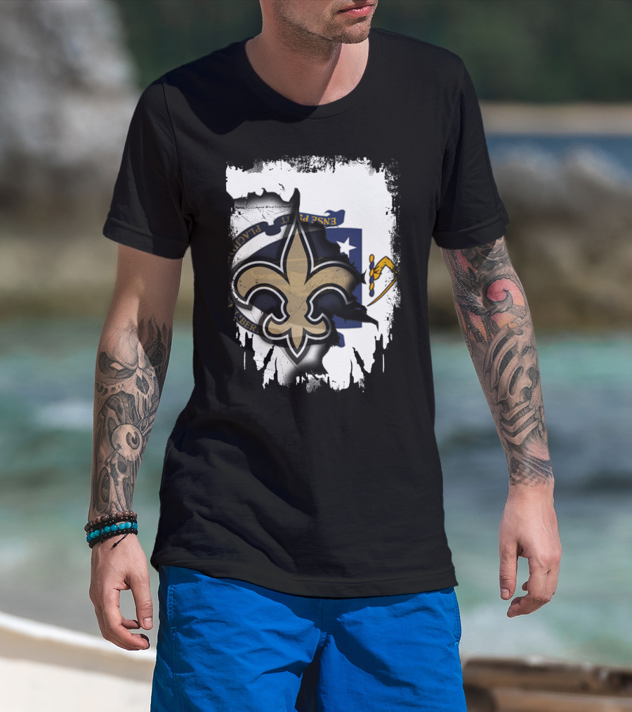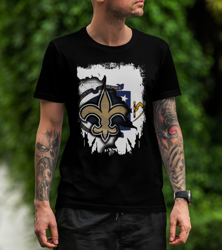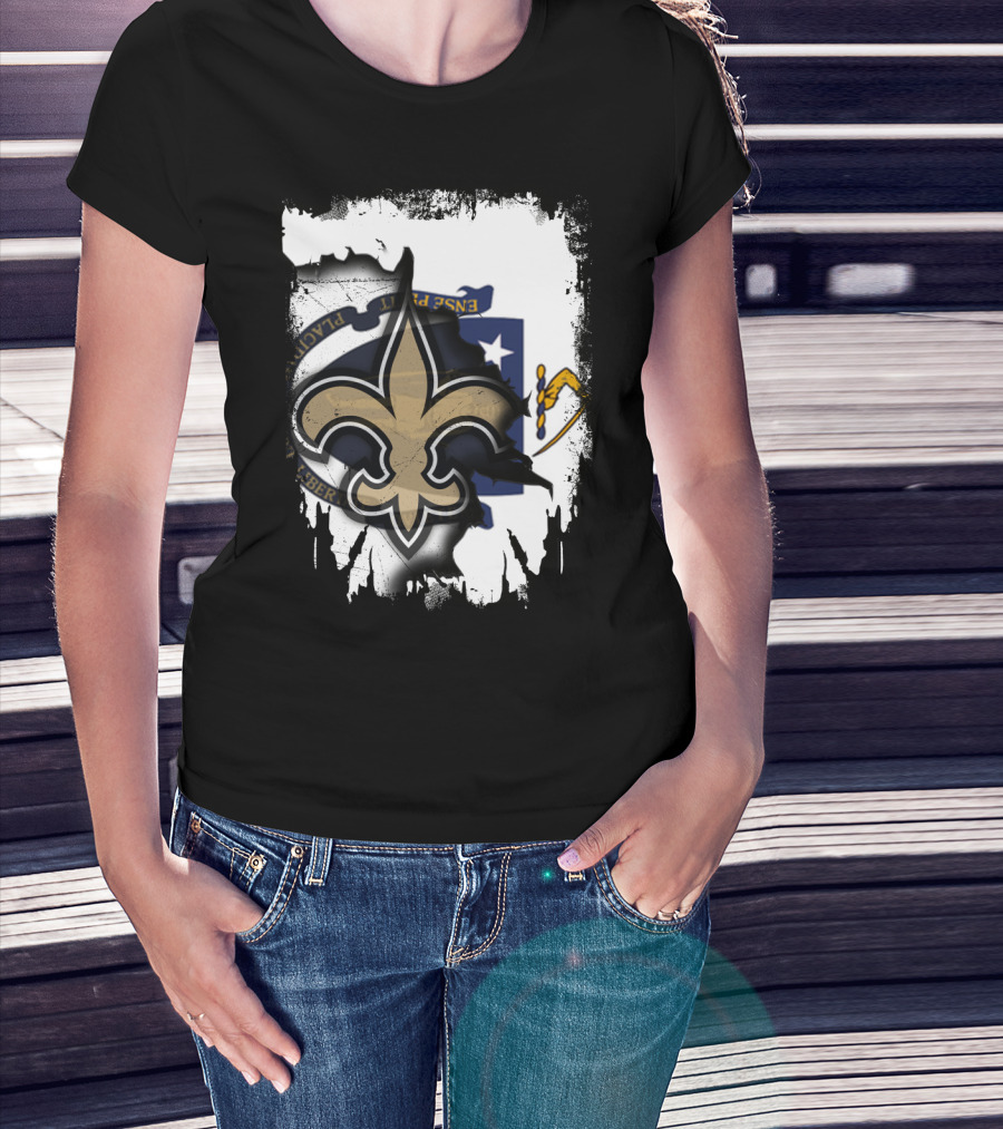 Together Massachusetts New Orleans Saints Fleur-de-Lis Flag Fusion T-Shirt