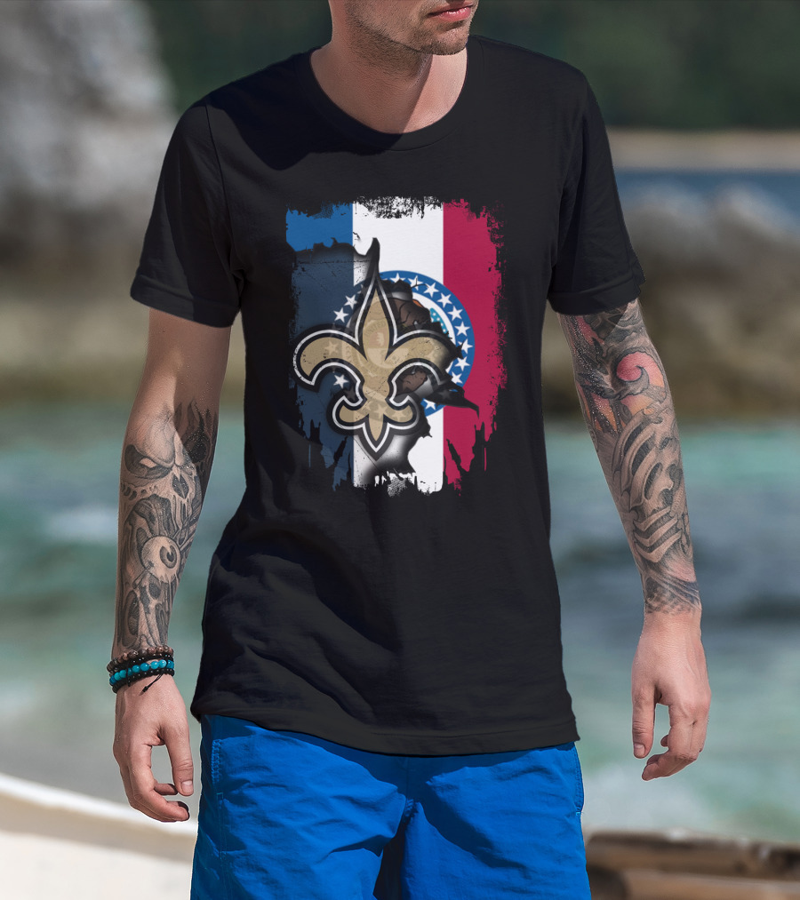 Missouri Flag With New Orleans Saints Fleur-de-Lis T-Shirt