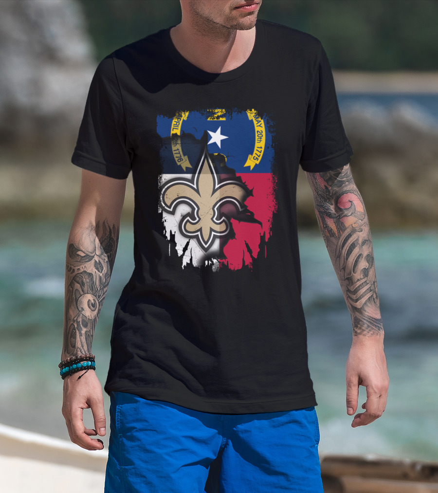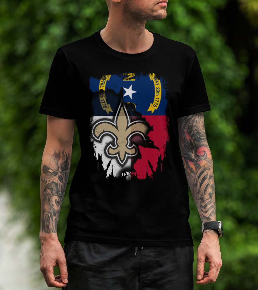 North Carolina Flag With New Orleans Saints Fleur-de-Lis T-Shirt