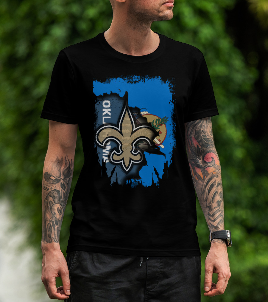 Oklahoma State Flag With New Orleans Saints Fleur-de-Lis T-Shirt