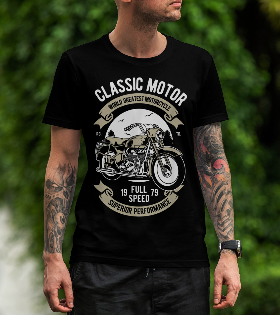 CLASSIC MOTOR WORLD GREATEST MOTORCYCLE FULL SPEED 1979 SUPERIOR PERFORMANCE MEN'S BIKER MOTORCYCLE BIKE T-Shirt