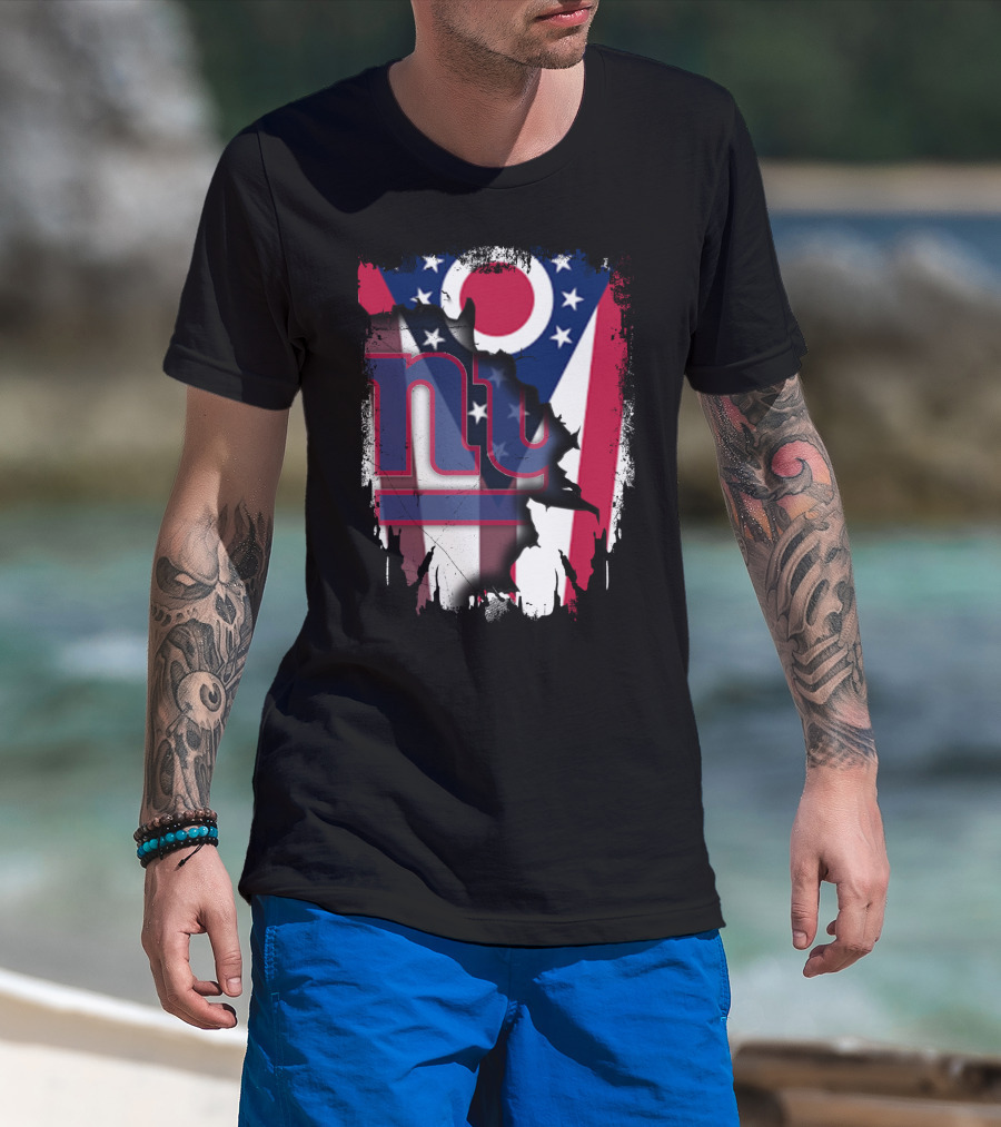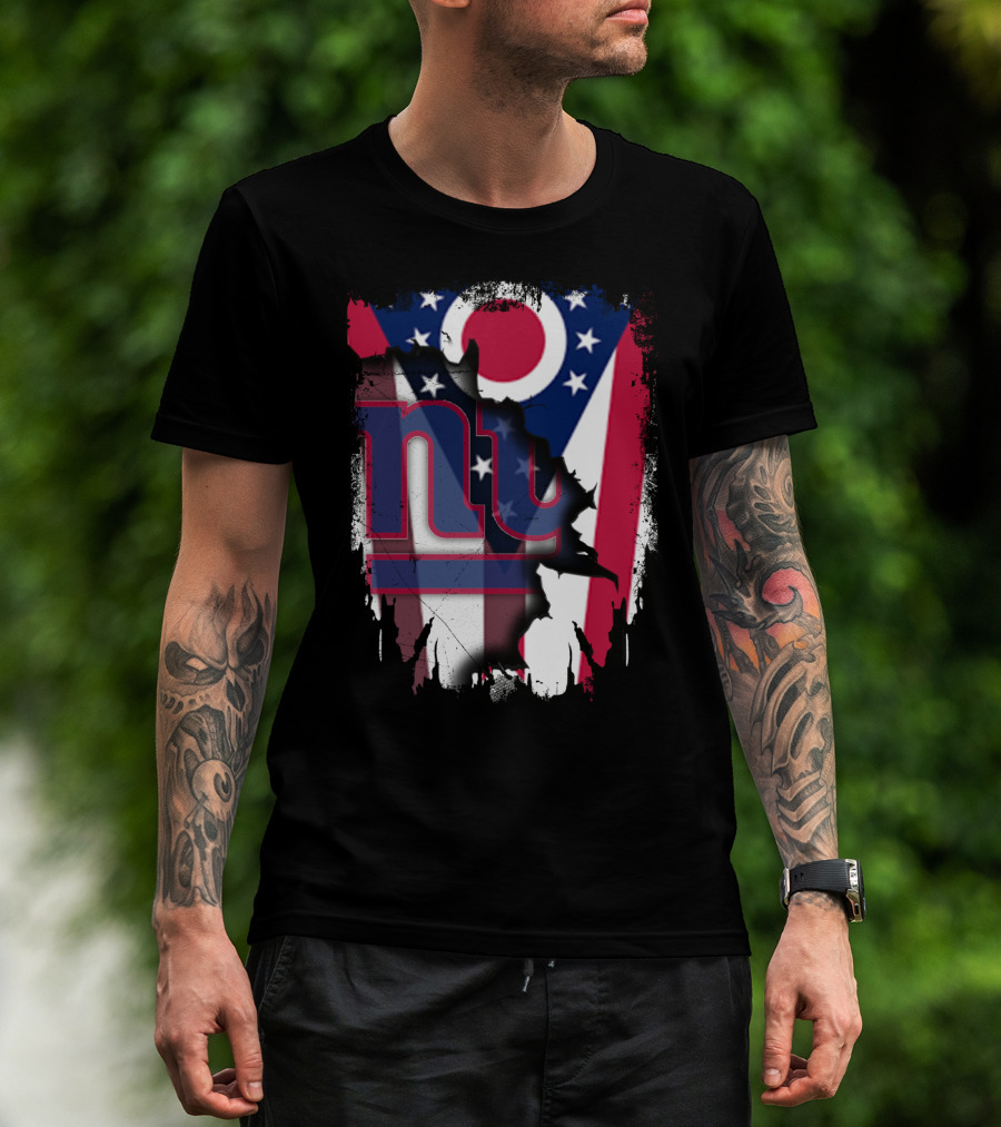 The Ohio with New York Giants Together T-shirt is designed for everyday wear and a consistent fit. Fabric is pre-shrunk ring-spun cotton with durable stitching. See the size chart below for exact measurements.