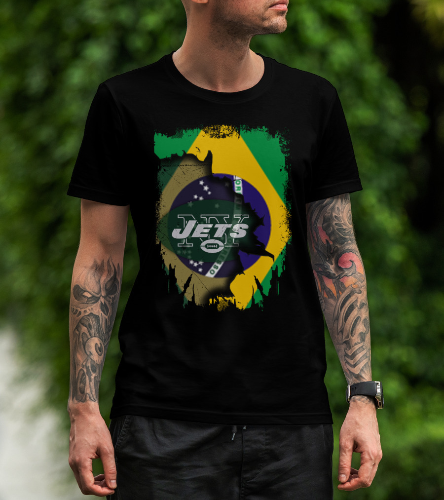 Brazilian Flag Meets New York Jets Logo Fusion T-Shirt