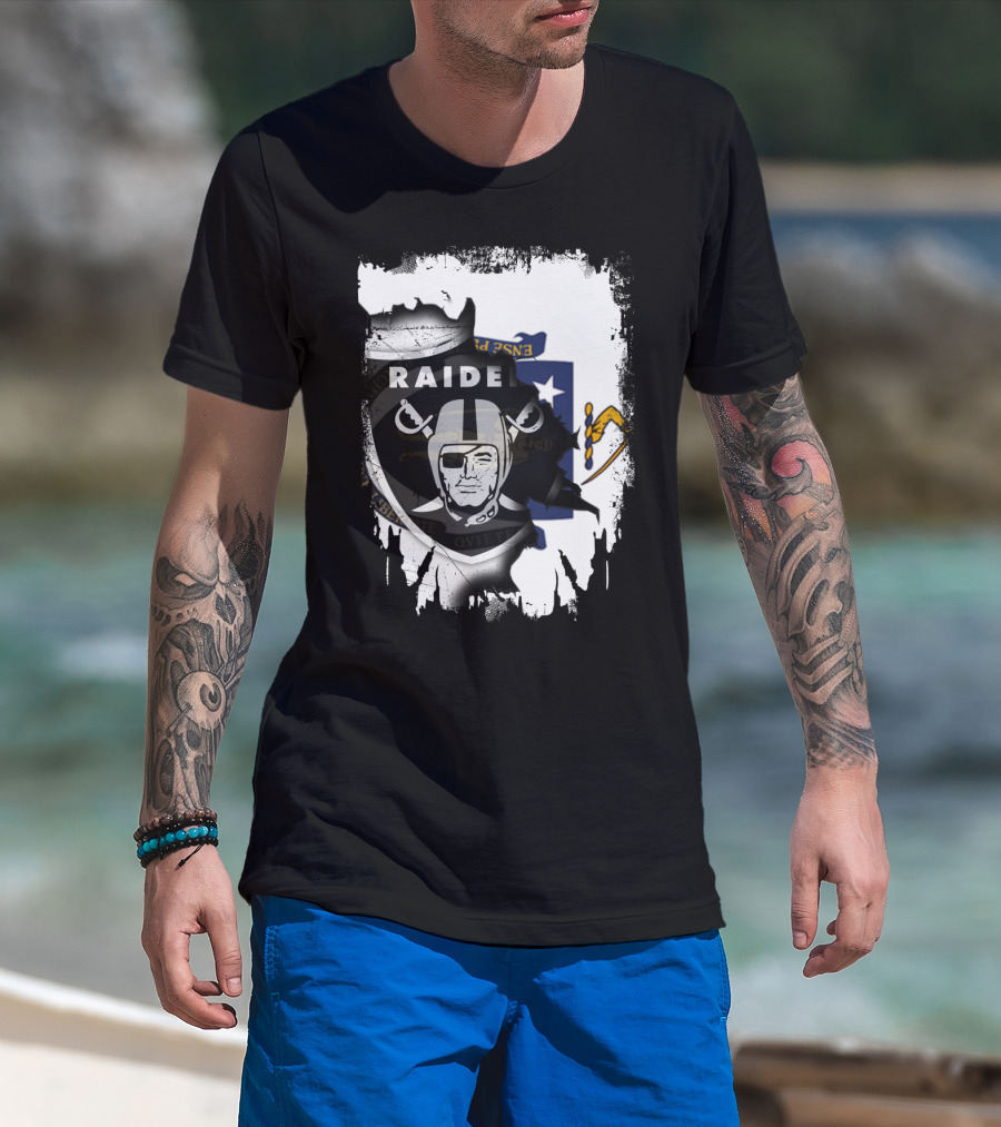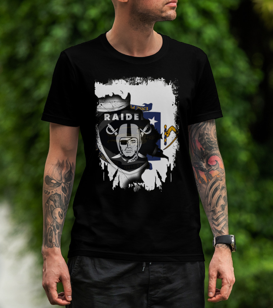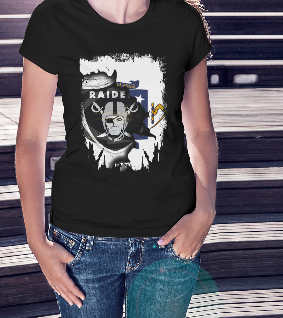 Massachusetts State Flag And Raiders Logo Fusion T-Shirt