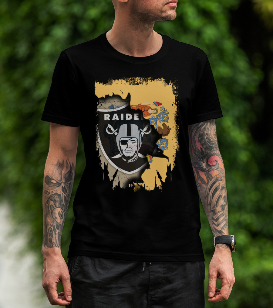 The New Jersey Raiders Shield Over State Flag Elements T-shirt is designed for everyday wear and a consistent fit. Fabric is pre-shrunk ring-spun cotton with durable stitching. See the size chart below for exact measurements.