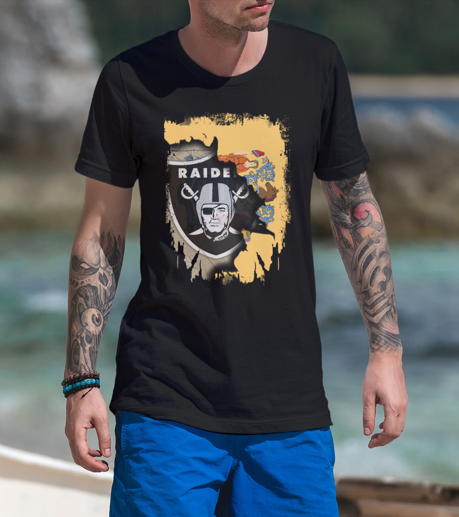 New Jersey Raiders Shield Over State Flag Elements T-Shirt