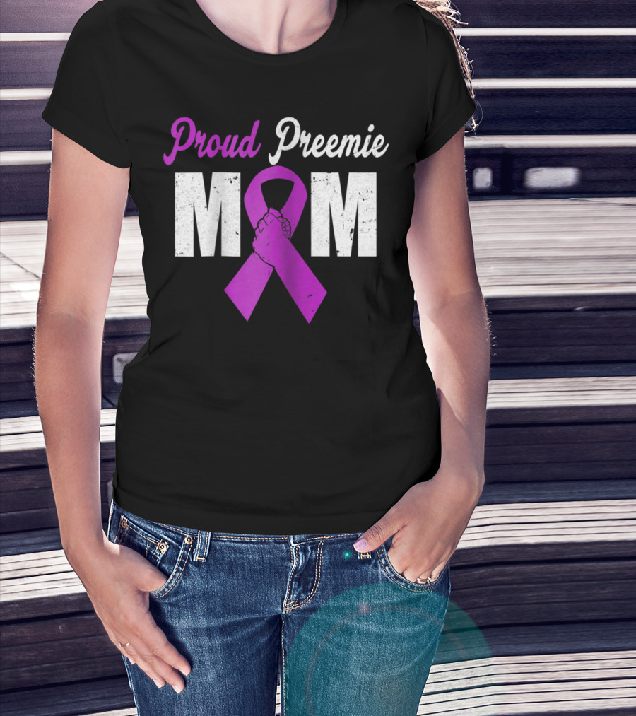 Proud Preemie Mom Premature Birth Awareness Purple T-Shirt