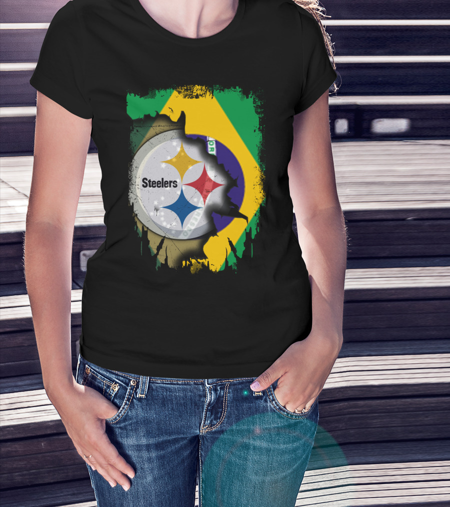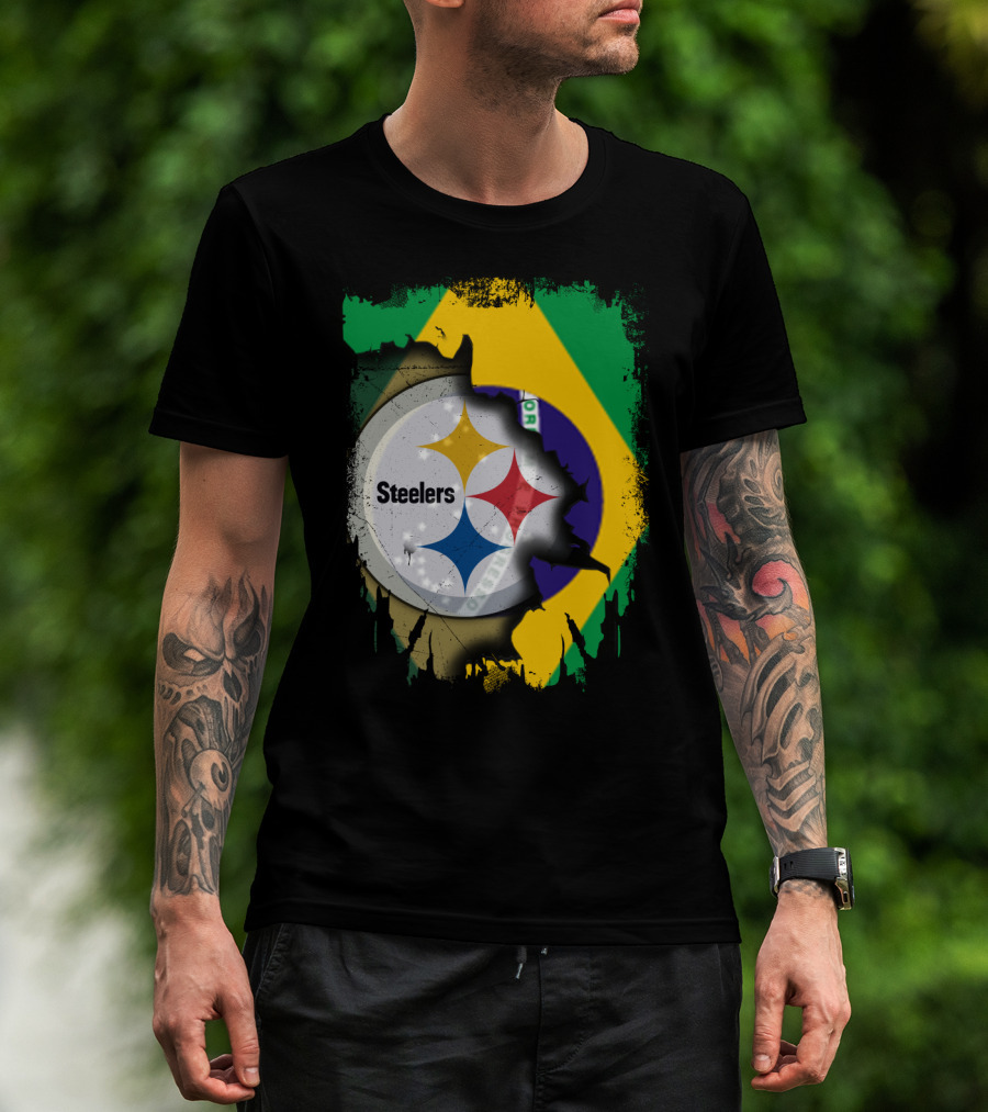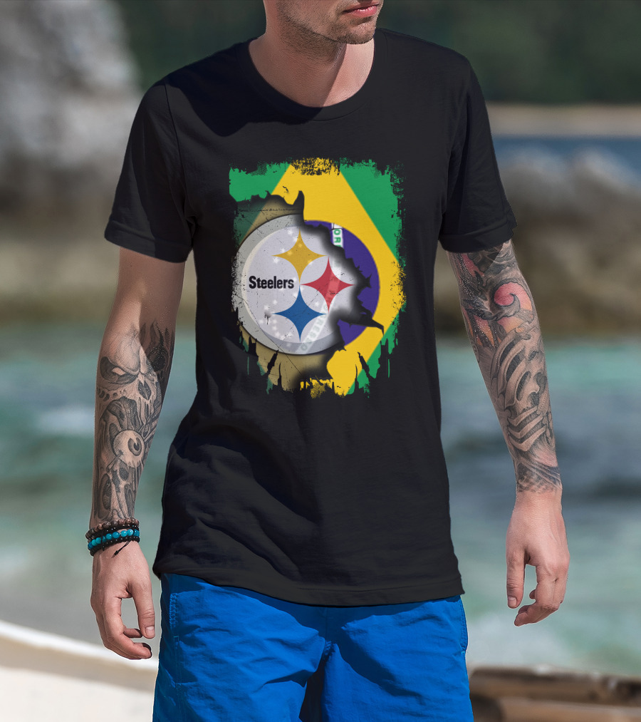 Together Brazil Steelers Flag And Logo Fusion T-Shirt