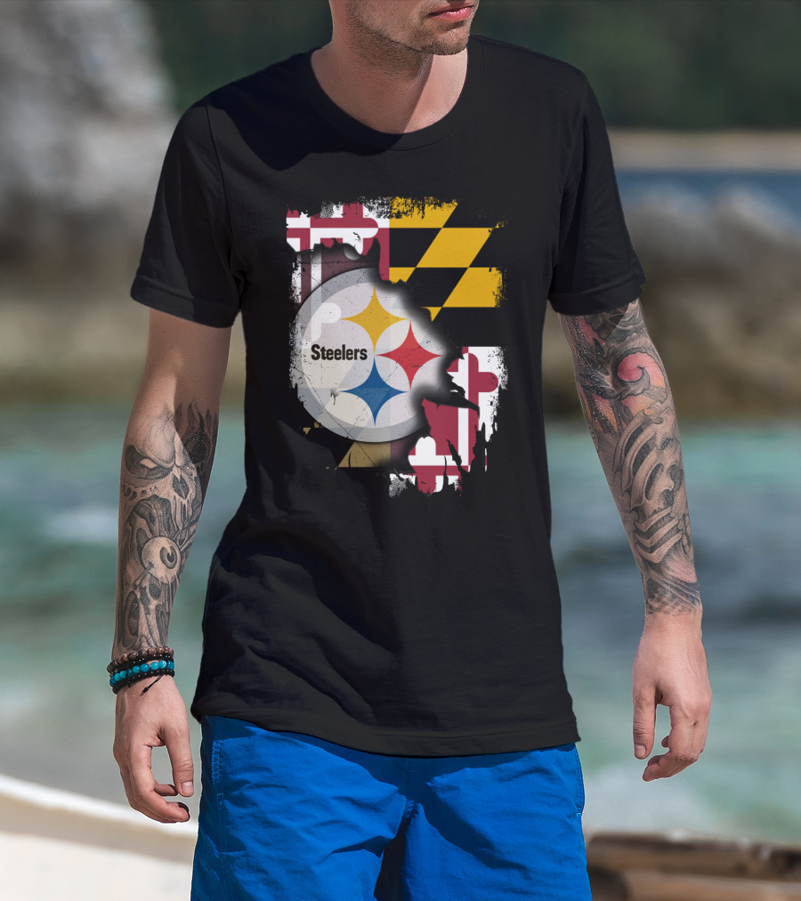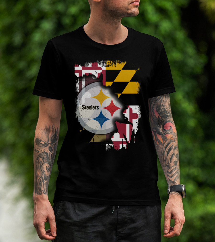 Together Maryland Flag Steelers Logo Fusion T-Shirt