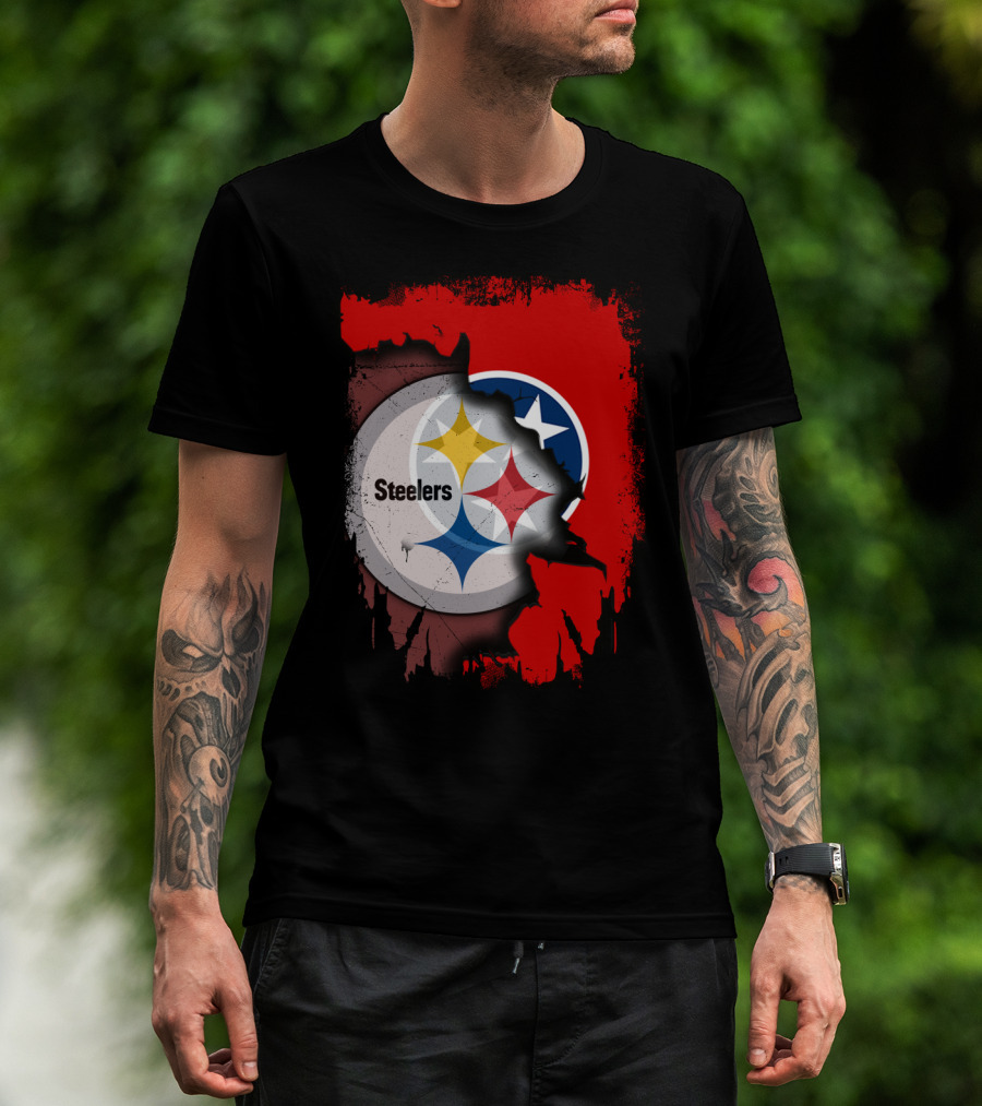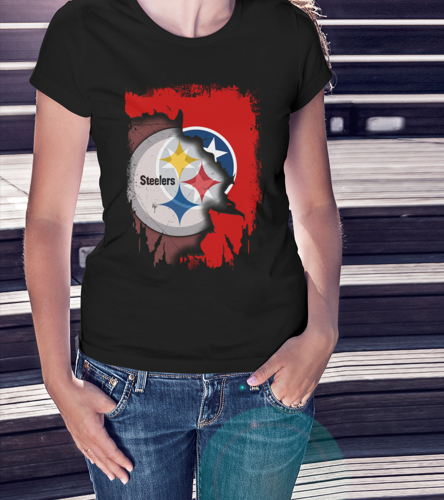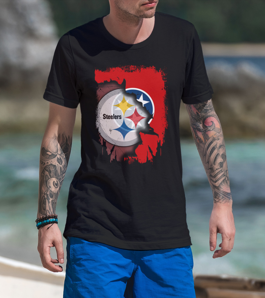 Tennessee And Steelers Fusion With Flag T-Shirt