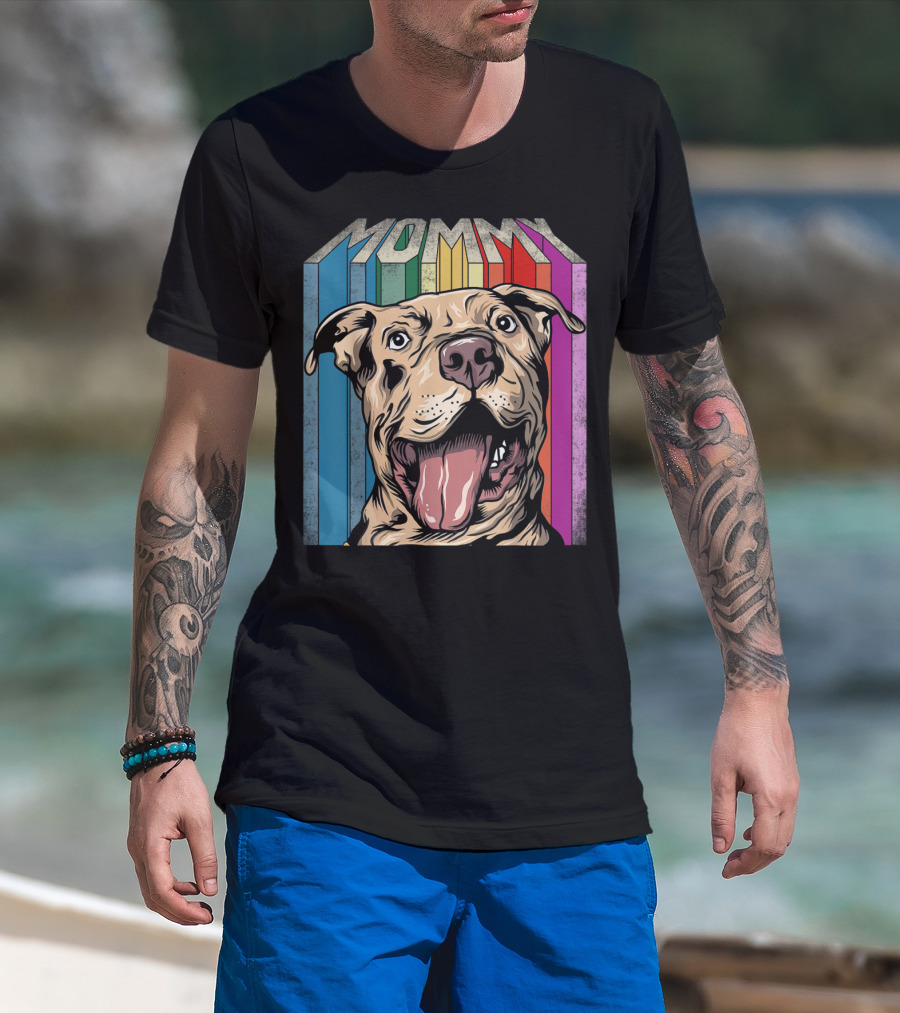 Mommy Pitbull Dog Retro Colorful Stripes T-Shirt