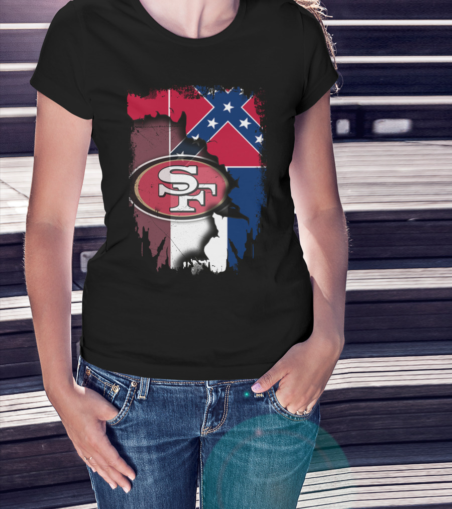 San Francisco 49ers Logo With Mississippi Flag Background T-Shirt