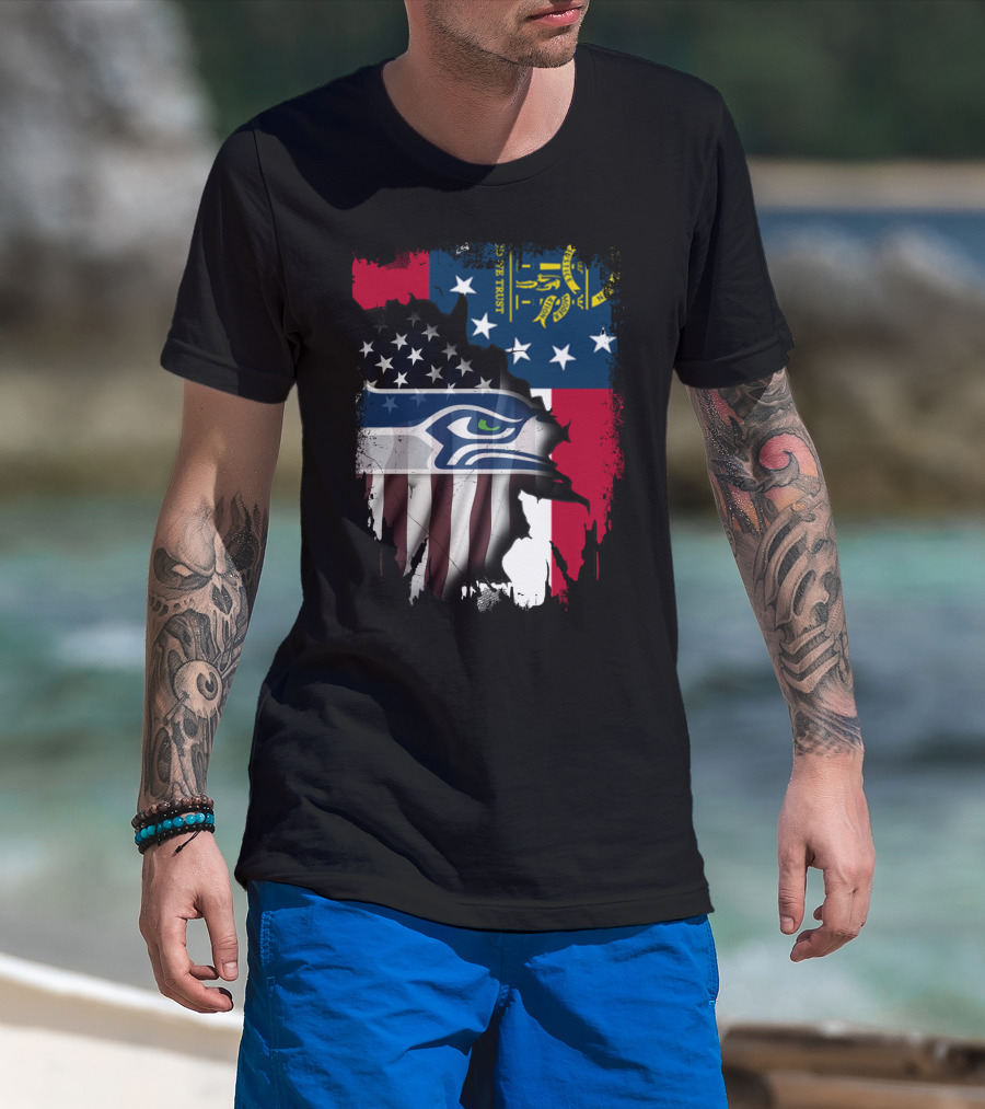 Georgia State Flag With Seahawks Logo And American Flag Elements T-Shirt