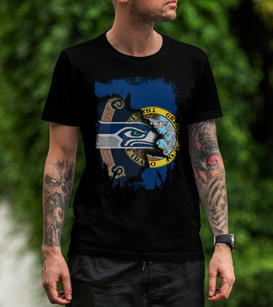 The Together Idaho State Flag With Seahawks T-shirt is designed for everyday wear and a consistent fit. Fabric is pre-shrunk ring-spun cotton with durable stitching. See the size chart below for exact measurements.