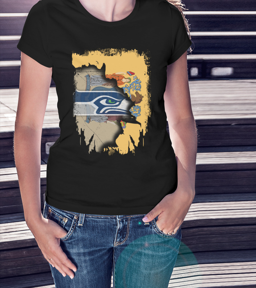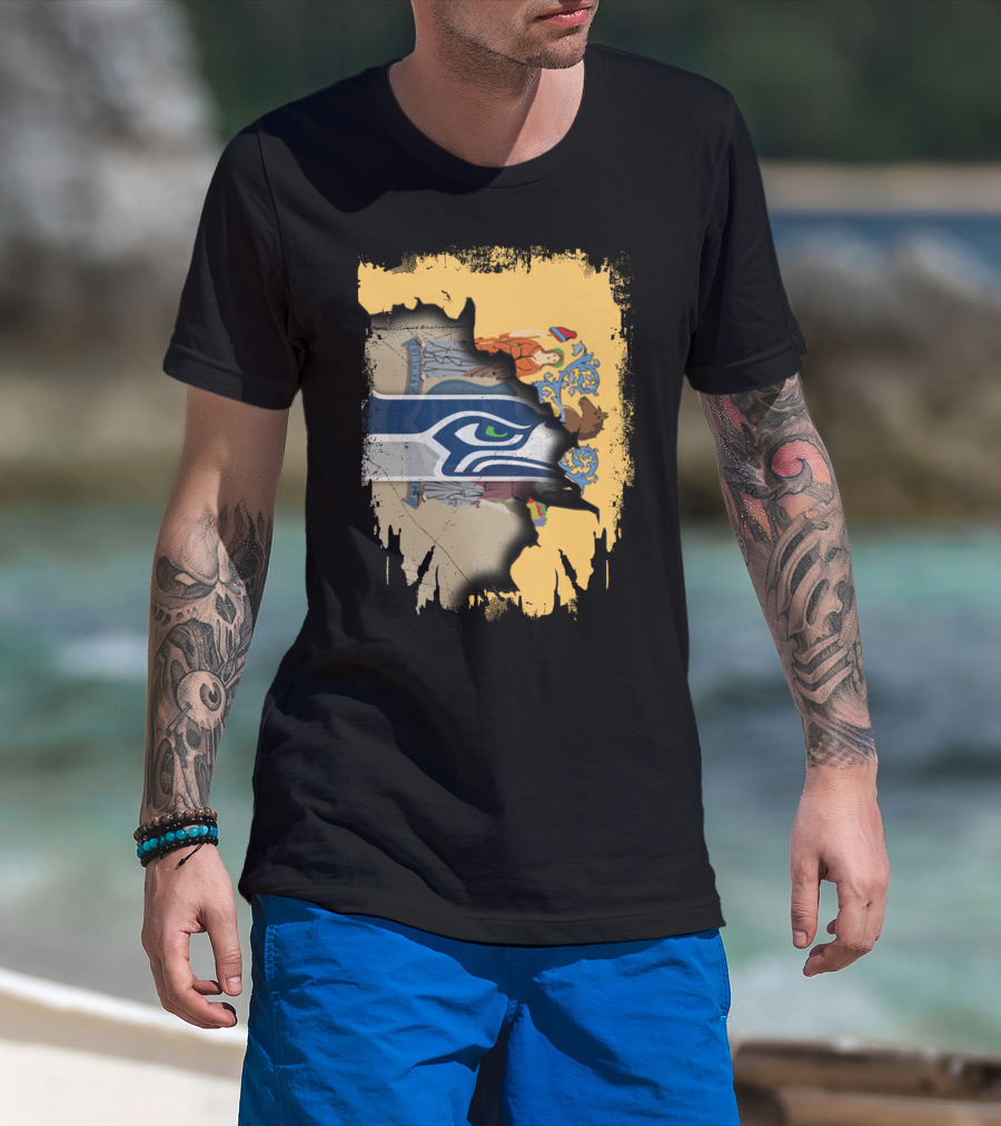 New Jersey State Crest Blending With Seahawks T-Shirt