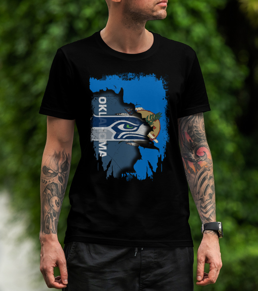 Oklahoma Flag With Seattle Seahawks Logo Fusion T-Shirt